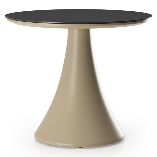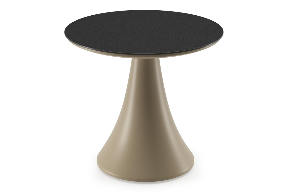 Fano low dining loungetafel rond in beige aluminium en volkeramiek Nero Black - Dia. 65 x H 40 cm | Exterioo