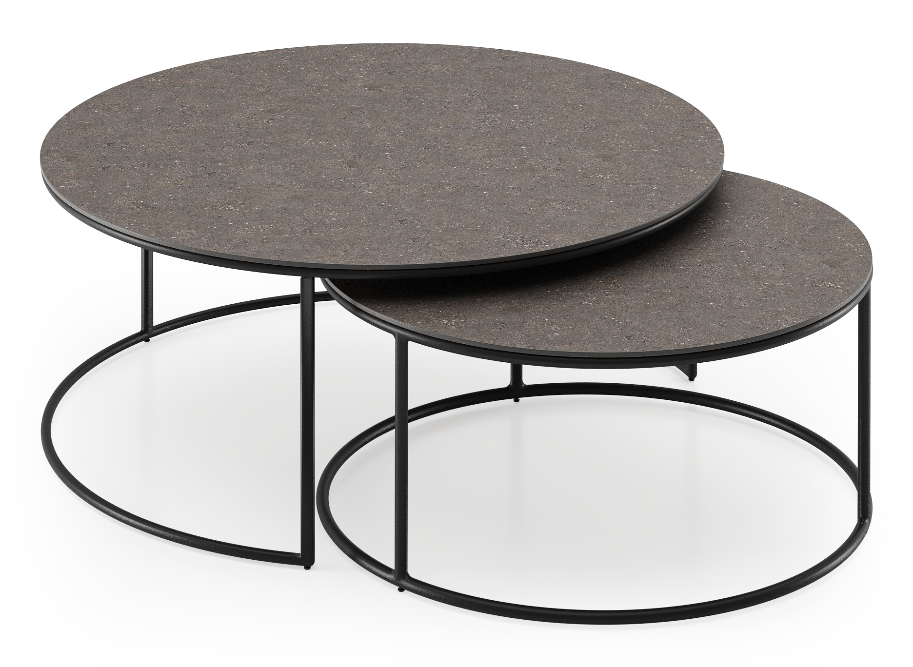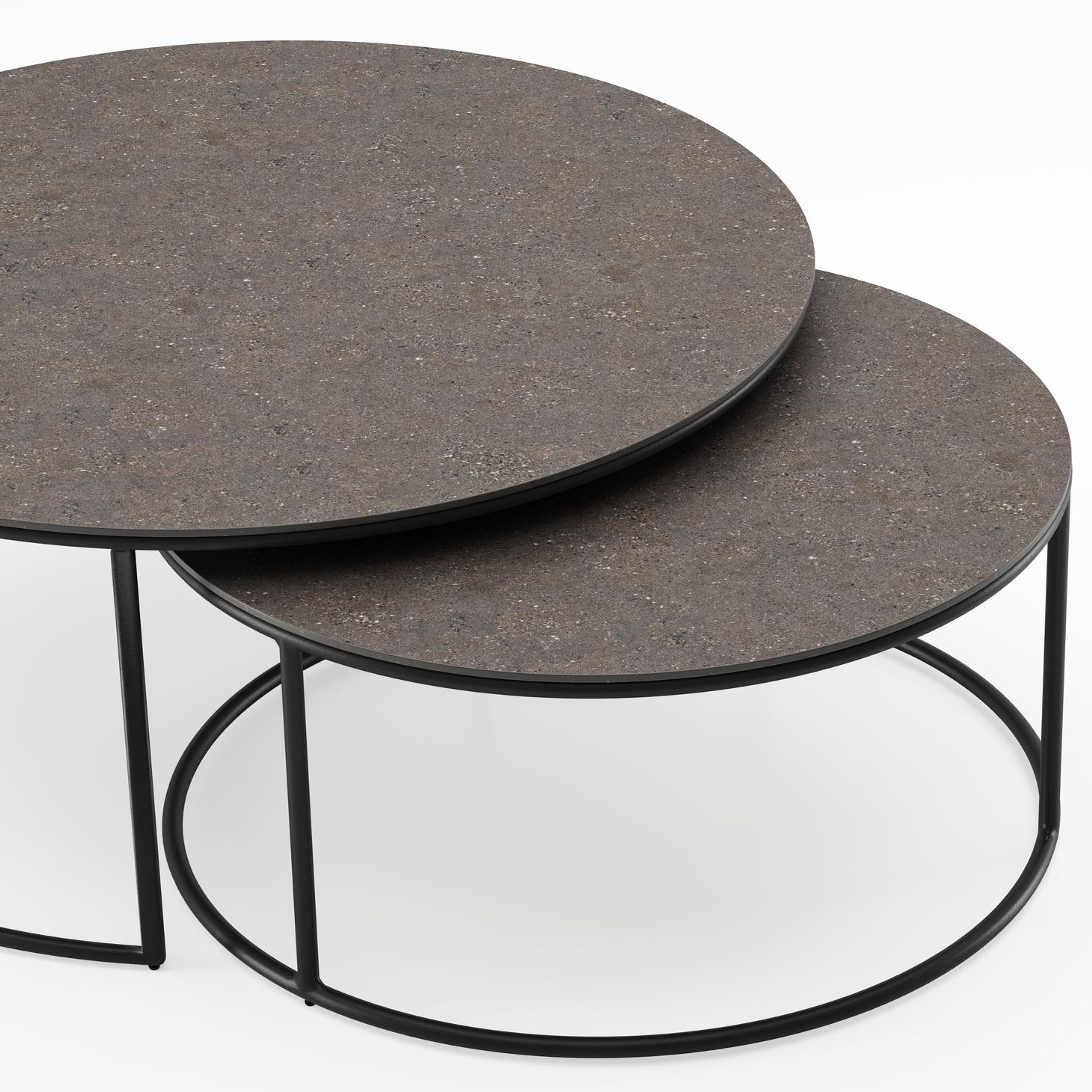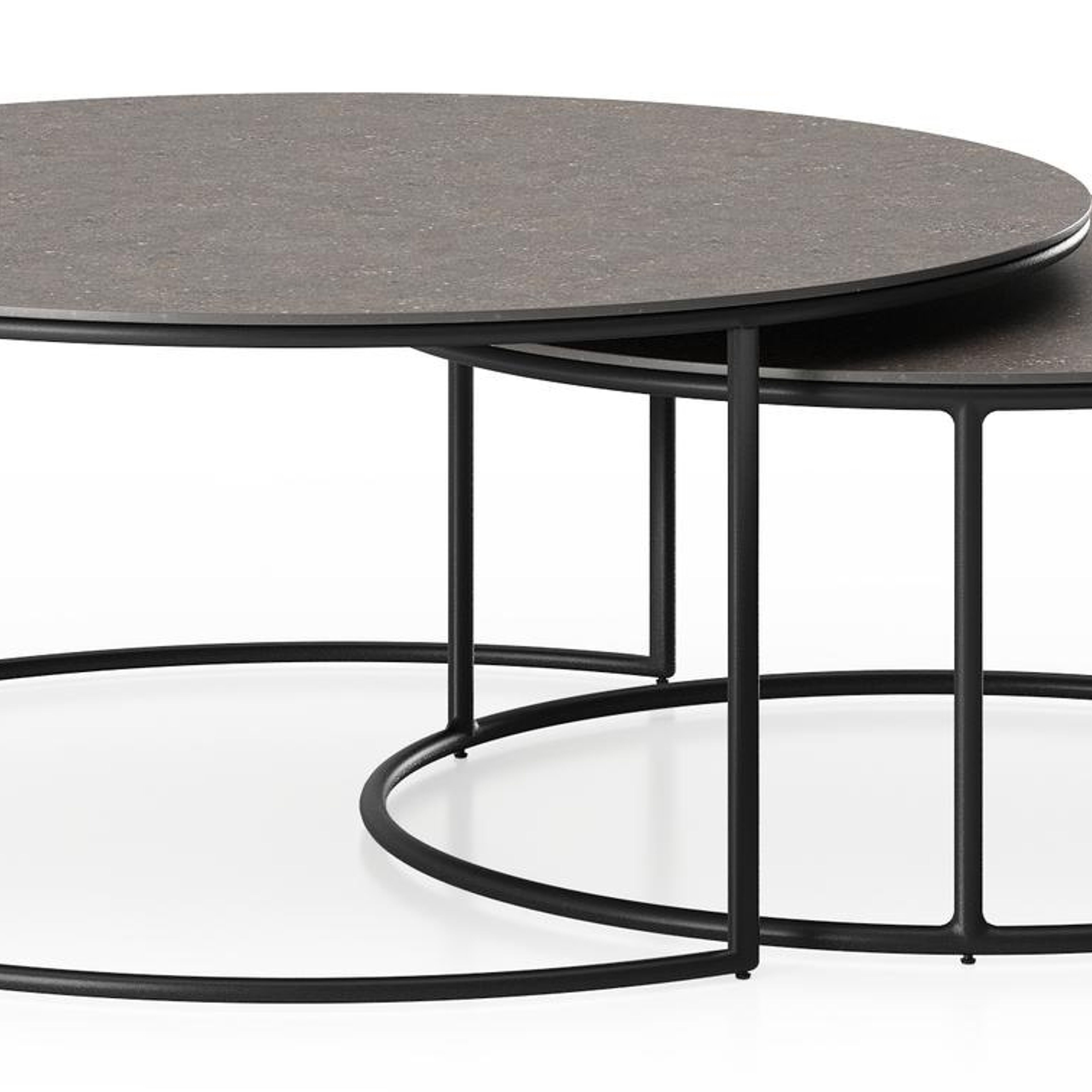 Fano loungetafels in zwart aluminium en wulong volkeramiek - Dia. 85/65 x H 35/30 cm | Exterioo tuinmeubelen