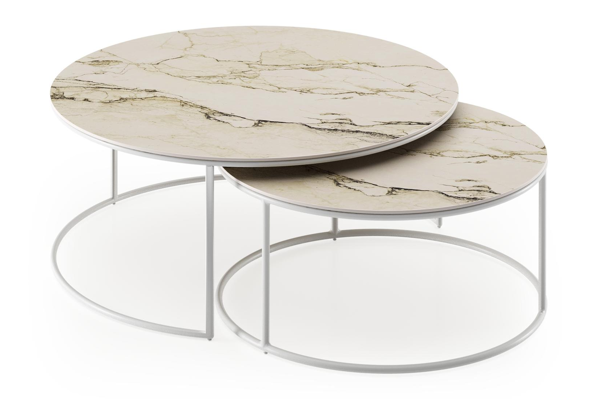 Fano loungetafels in wit aluminium en colorado dunes volkeramiek - Dia. 85/65 x H 35/30 cm | Exterioo