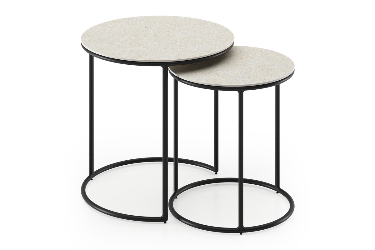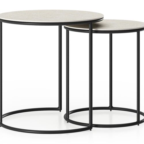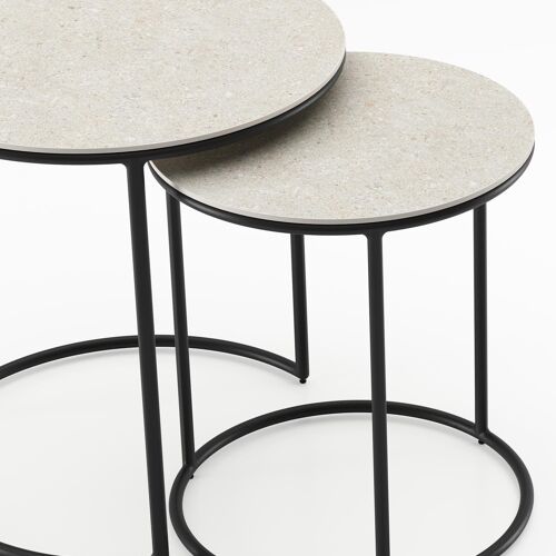 Maak van jouw tuin een oase van stijl en comfort met onze set van twee Fano bijzettafels. De loungetafels zijn ideaal om je drankjes op te zetten. Het aluminium frame is bestand tegen roest waardoor deze loungetafels perfect zijn voor alle seizoenen. Het tafelblad bestaat uit volkeramiek, een hoogwaardig materiaal dat bekend staat om zijn duurzaamheid en weerbestendigheid. Het is bestand tegen krassen, vlekken en verkleuring, waardoor het perfect is voor buitengebruik. Bovendien is volkeramiek eenvoudig te reinigen en te onderhouden.