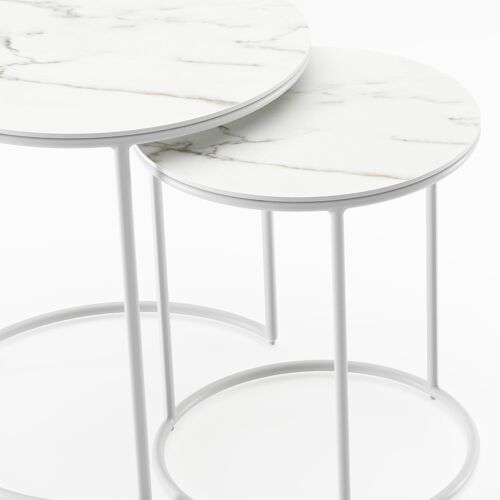 Maak van jouw tuin een oase van stijl en comfort met onze set van twee Fano bijzettafels. De loungetafels zijn ideaal om je drankjes op te zetten. Het aluminium frame is bestand tegen roest waardoor deze loungetafels perfect zijn voor alle seizoenen. Het tafelblad bestaat uit volkeramiek, een hoogwaardig materiaal dat bekend staat om zijn duurzaamheid en weerbestendigheid. Het is bestand tegen krassen, vlekken en verkleuring, waardoor het perfect is voor buitengebruik. Bovendien is volkeramiek eenvoudig te reinigen en te onderhouden.