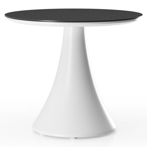Fano low dining low dining loungetafel rond in wit aluminium en volkeramiek Nero Black - Dia. 65 x H 55 cm | Exterioo