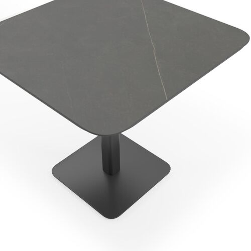 De Fano tafel is perfect voor op jouw balkon of klein terras. De tafel heeft een typische centrale poot. Die is gemaakt van aluminium een licht, maar sterk en roestvrij materiaal dat zeer geschikt is voor tuinmeubelen. Deze tafel is afgewerkt met een Calatorao tafelblad. Die is geïnspireerd op een grijze kalksteen. Het blad heeft rustige marmerlook dankzij de gouden aders op de donkergrijze kleurschakeringen. Het voordeel van volkeramische tafelbladen is dat ze krasbestendig zijn en bestand zijn tegen alle weersomstandigheden.