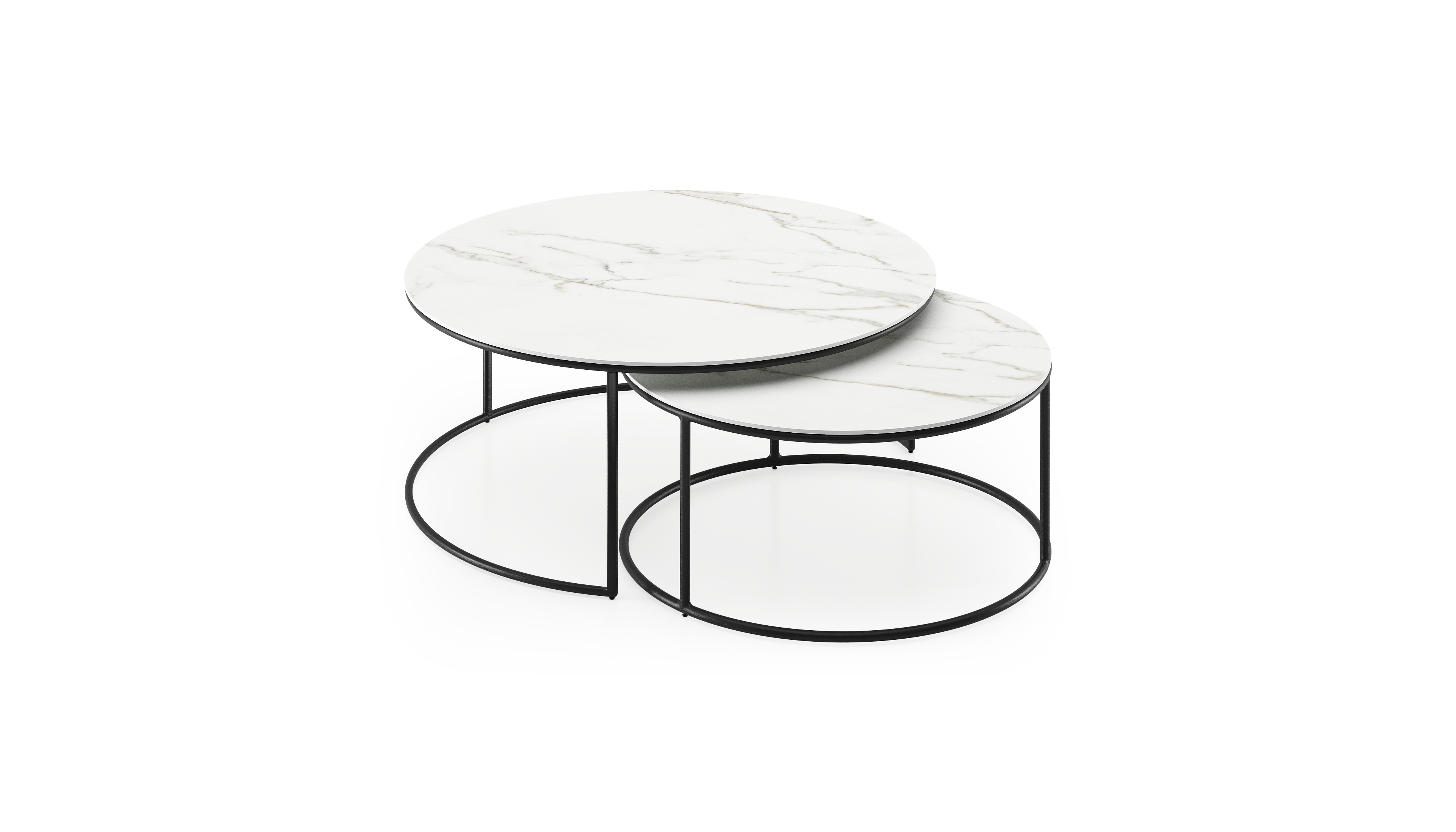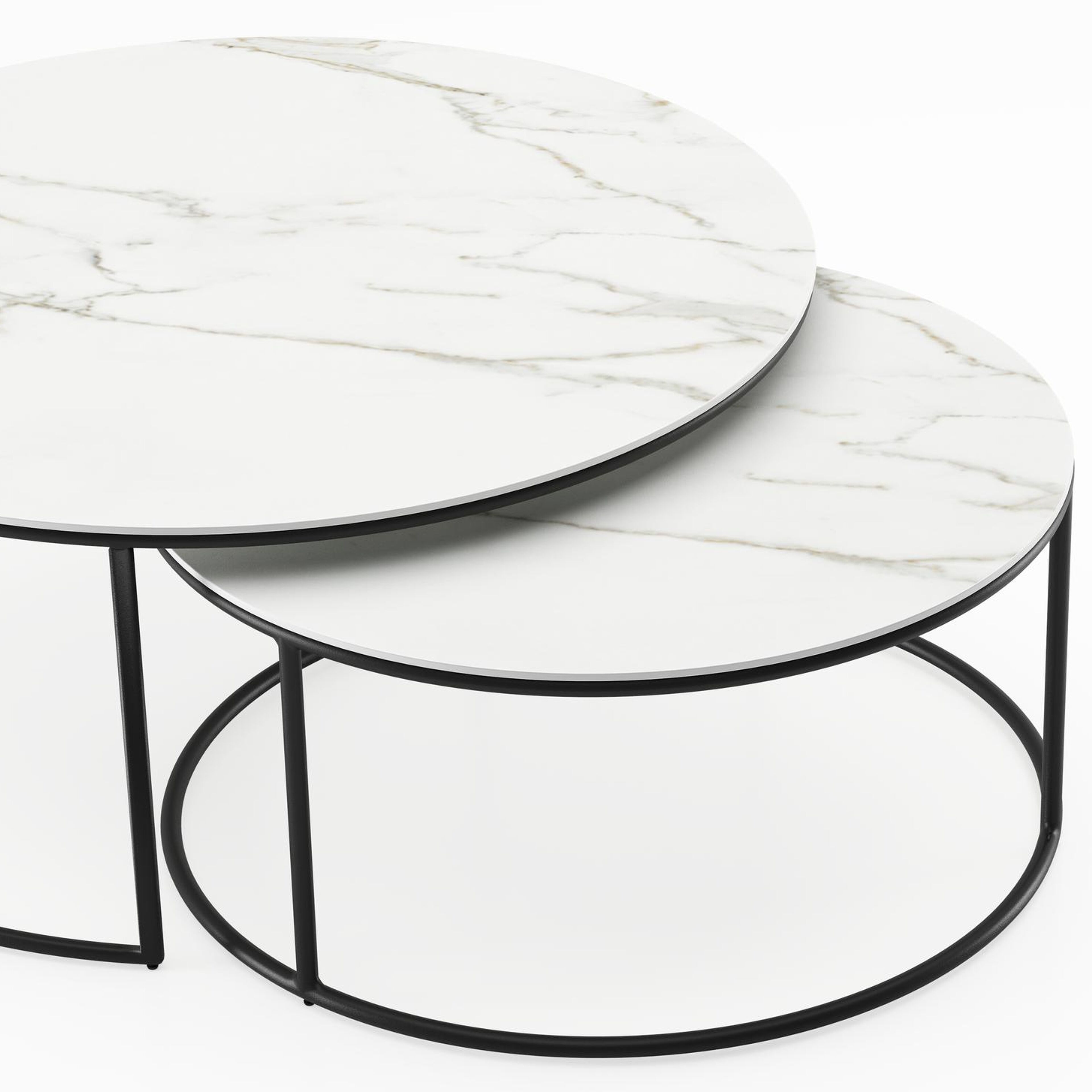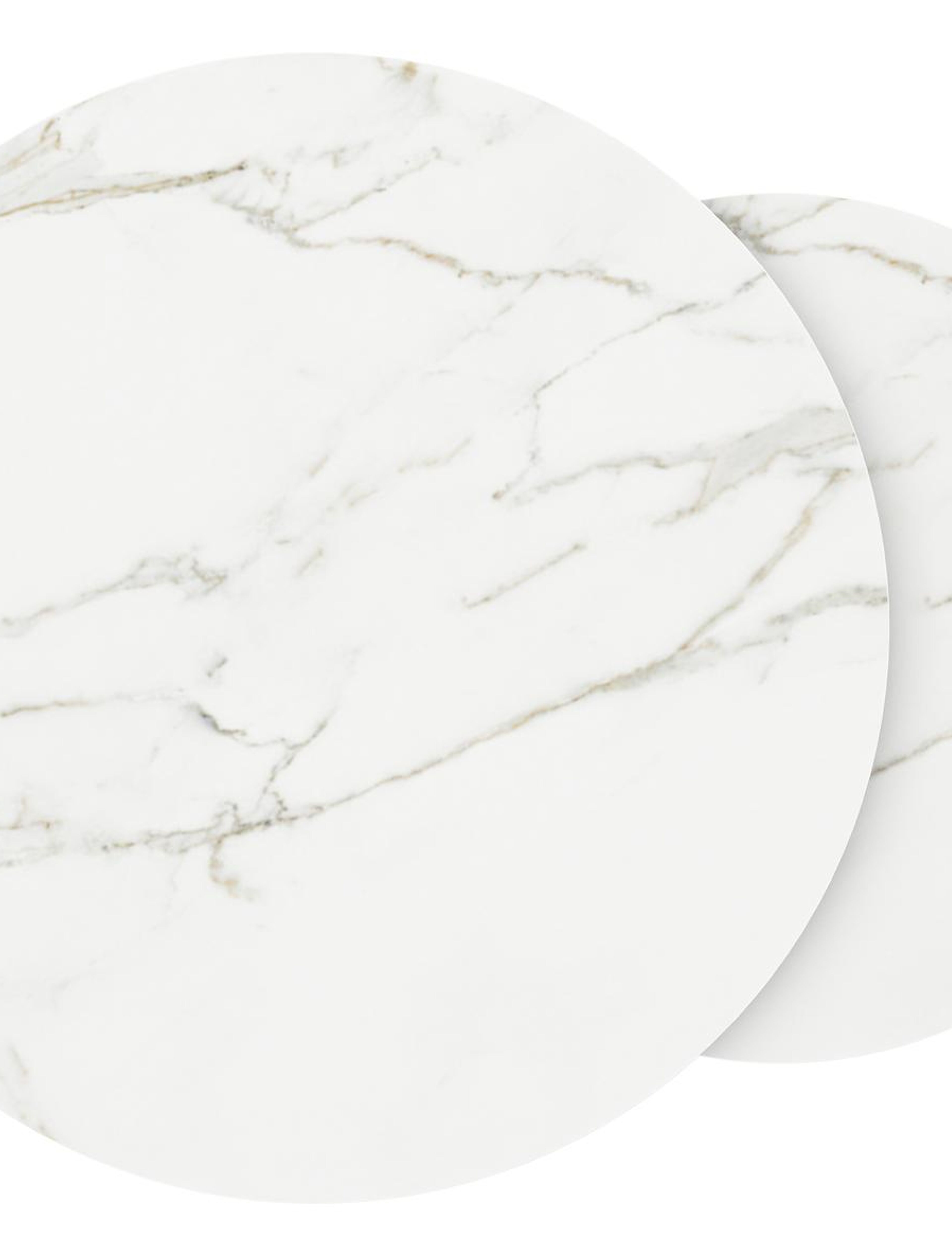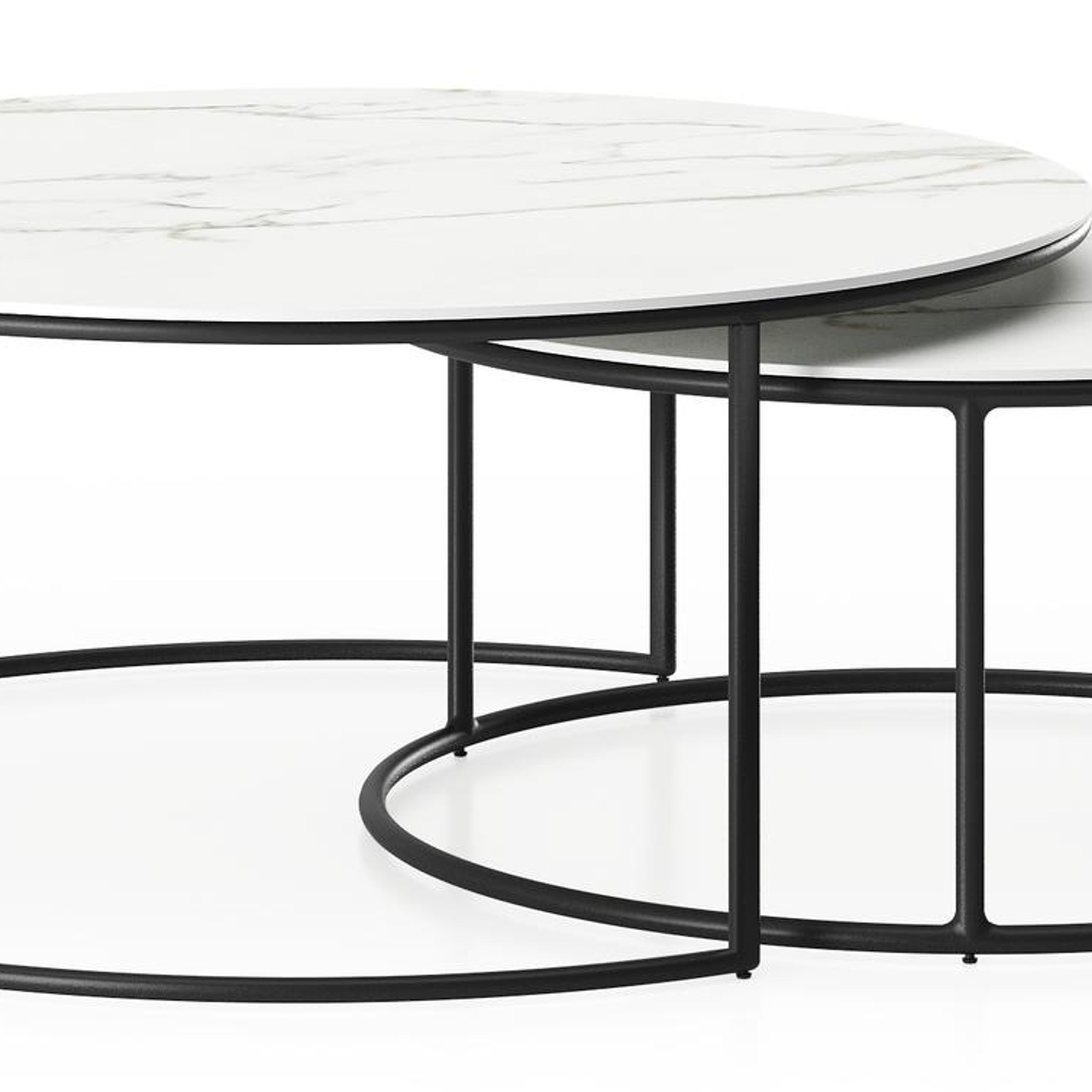 Fano set van 2 loungetafels rond in zwart aluminium en volkeramiek Calacatta - Dia. 85/65 x H 35/30 cm | Exterioo tuinmeubelen