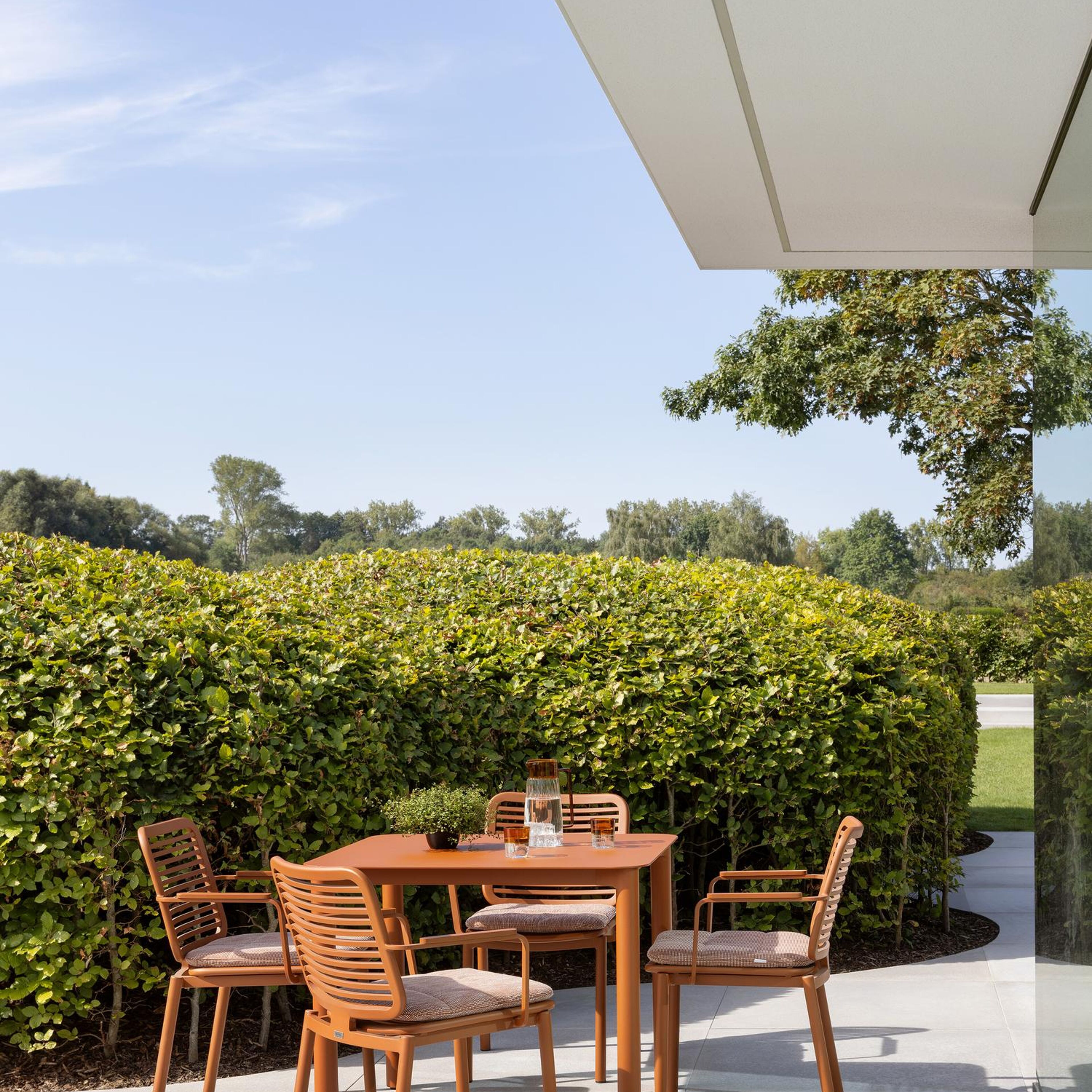 Fano stapelbare tuinstoel in roestbruin aluminium | Exterioo tuinmeubelen