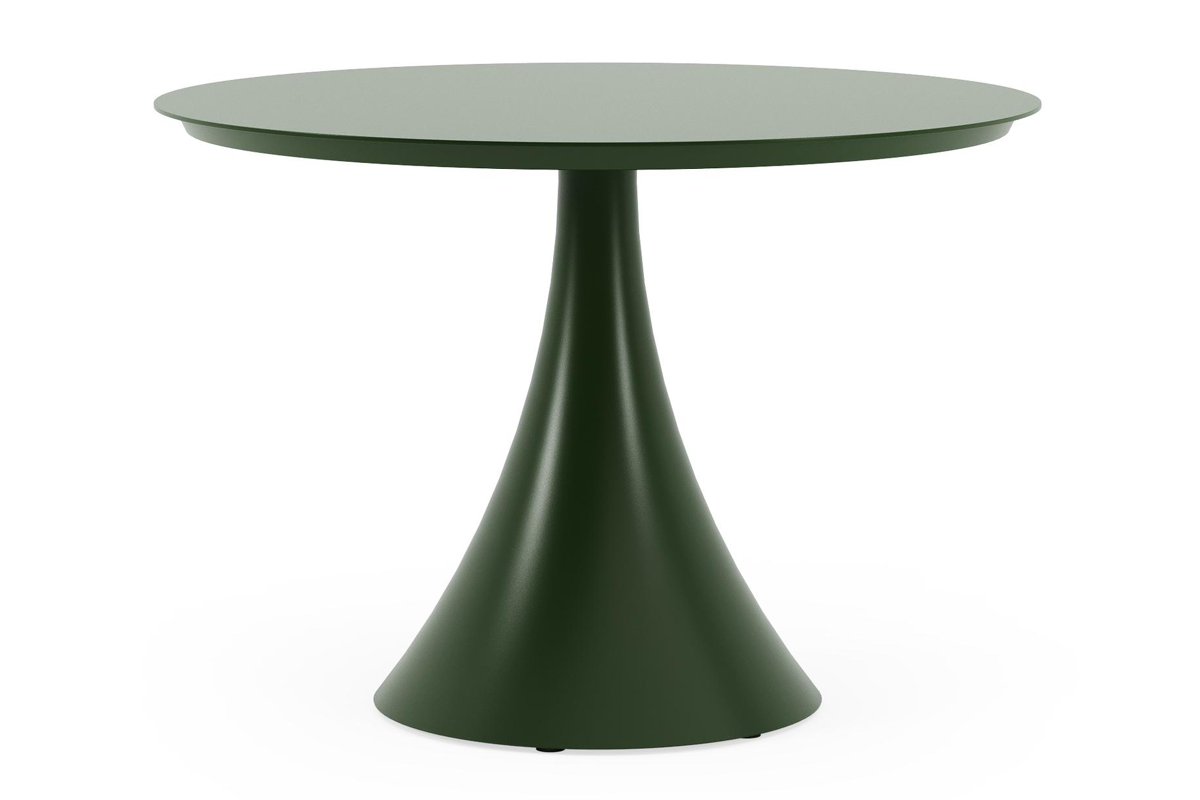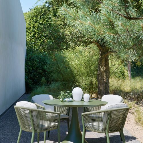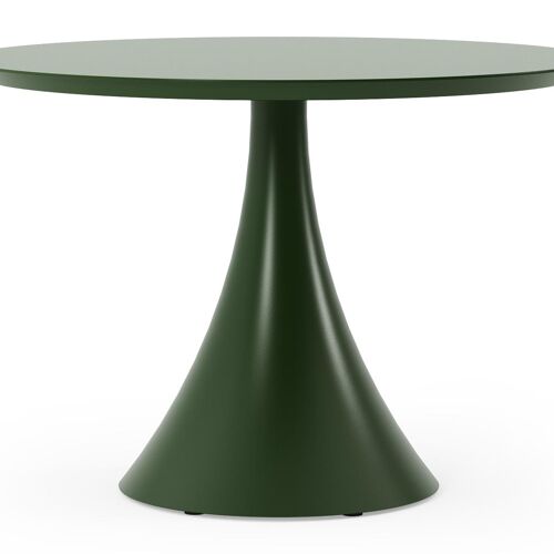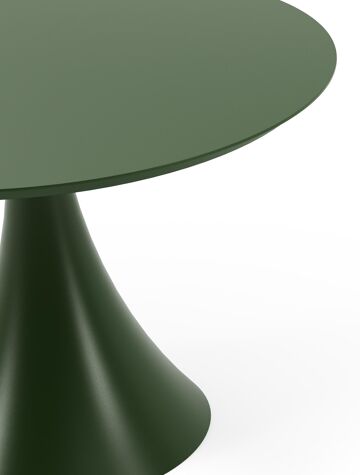 De Fano collectie onderscheidt zich door zijn trendy ronde tafel met de kenmerkende trompetpoot. Deze eigentijdse tafel biedt niet alleen een modieuze uitstraling, maar creëert ook een gezellige tafelbeleving, waarbij mensen tegenover elkaar kunnen zitten. De speelse groene kleur geeft een eigen uniek karakter aan deze tafel.