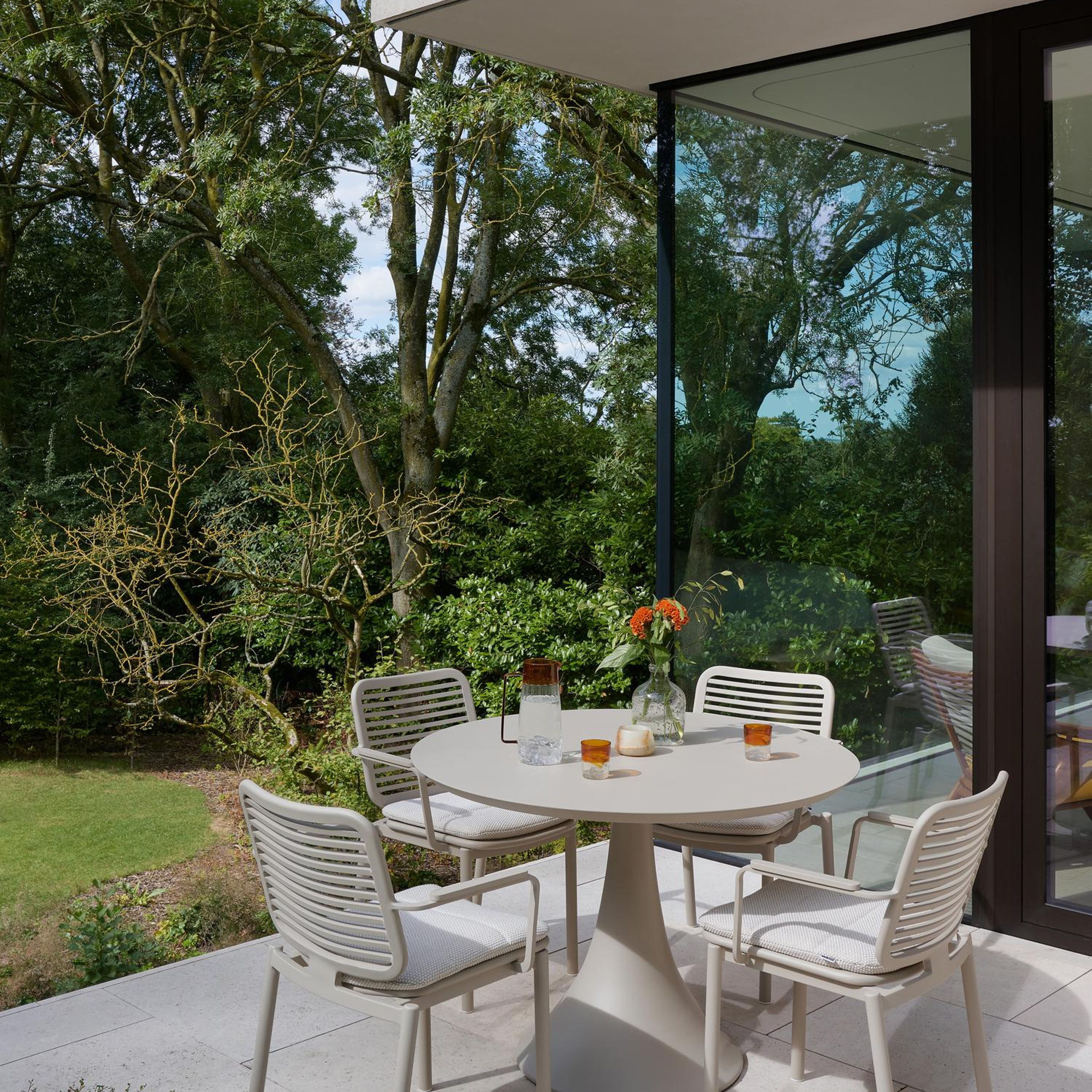 Fano tuintafel rond in beige aluminium - Dia. 110 cm | Exterioo tuinmeubelen