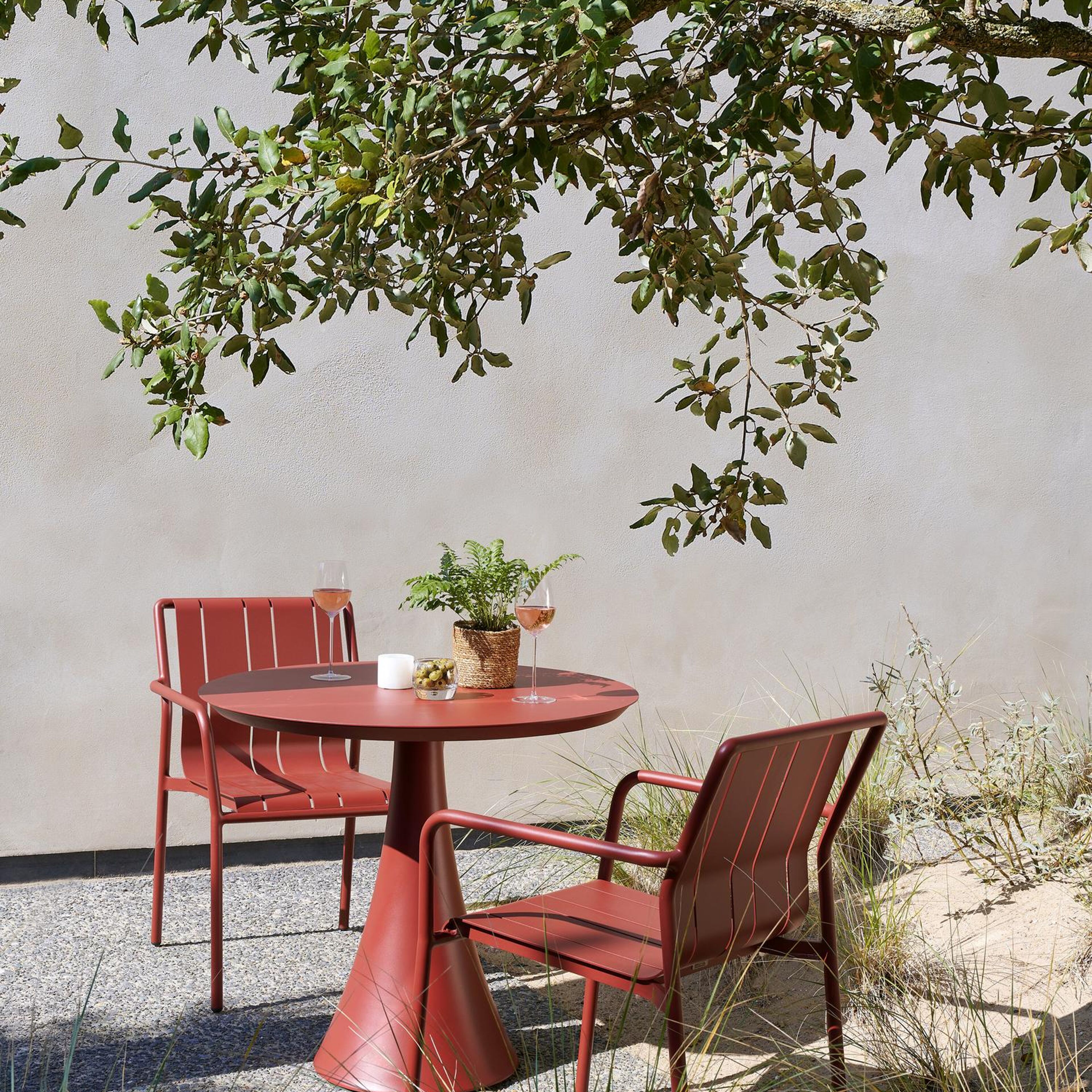 Het frame van de tafel is gemaakt uit roestvrij aluminium, een sterk, maar toch licht materiaal dat makkelijk verplaatsbaar is. Het oppervlak is glad afgewerkt waardoor het geen vuil aantrekt en onderhoudsvriendelijk is. De poedercoating zorgt voor de UV- en weerbestendigheid van je meubel.