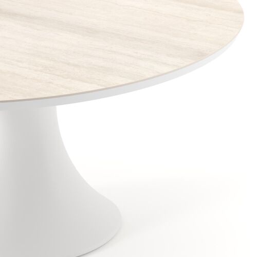 Fano tuintafel rond in wit aluminium en volkeramiek Travertino Bianco - Dia. 148 x H 74 cm | Exterioo