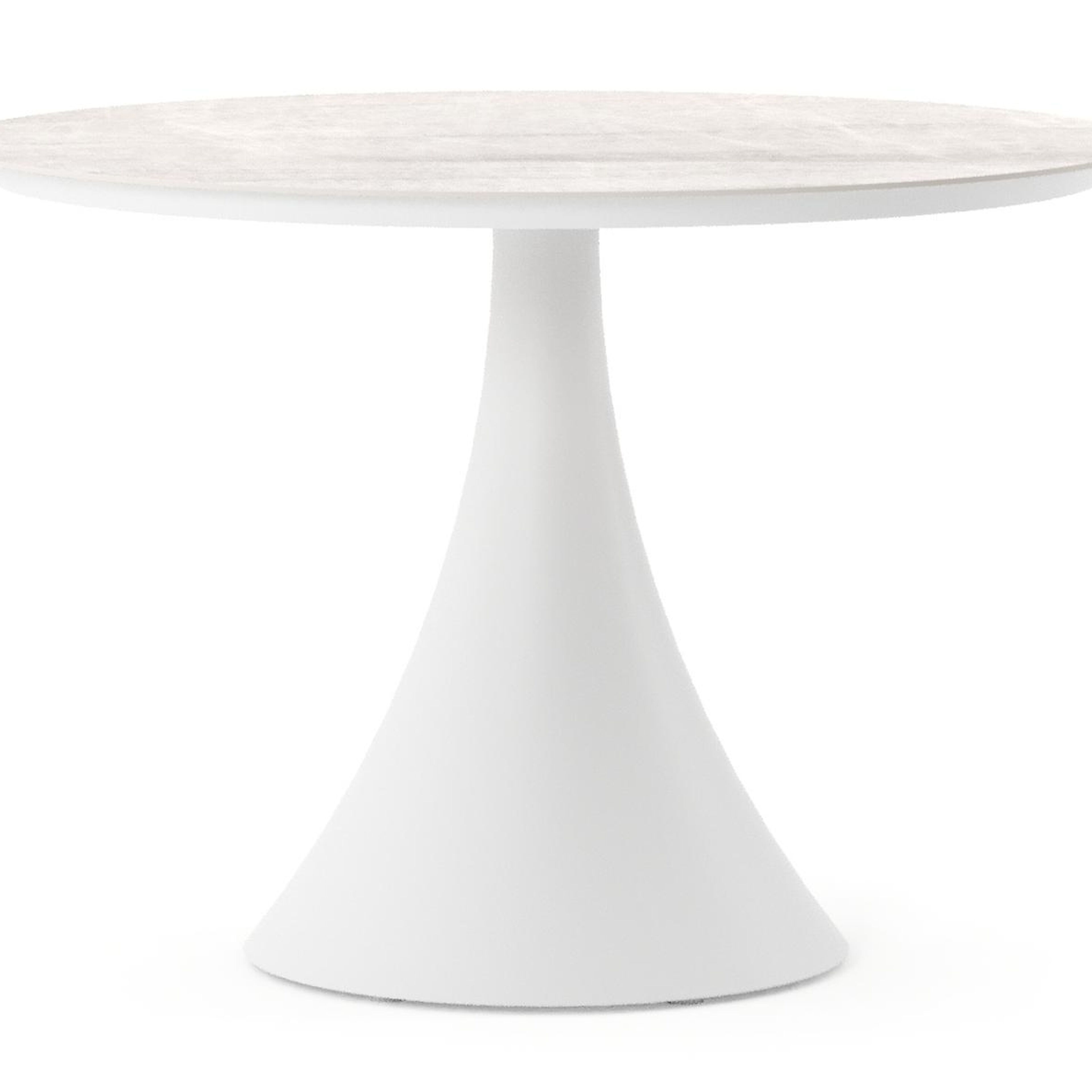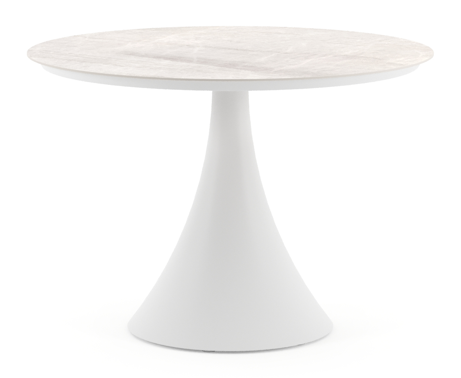 Fano tuintafel rond in wit aluminium en volkeramiek Travertino Bianco - Dia. 110 x H 74 cm | Exterioo tuinmeubelen