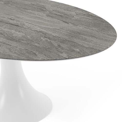 Fano tuintafel ovaal in wit aluminium en volkeramiek Aspen Grey - L 180 x B 110 x H 75 cm | Exterioo