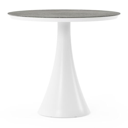 Fano tuintafel rond in wit aluminium en volkeramiek Aspen Grey - Dia. 85 x H 75 cm | Exterioo