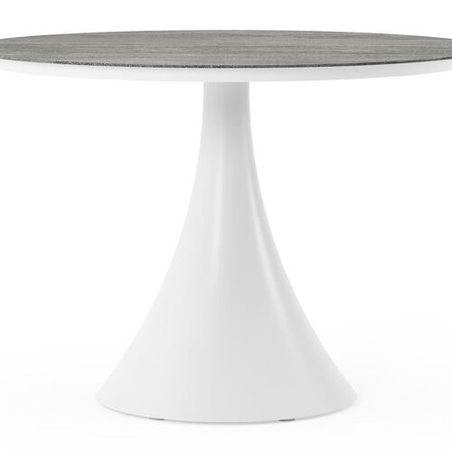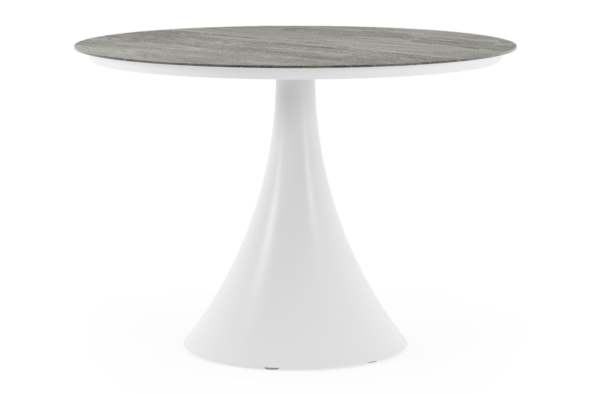 Fano tuintafel rond in wit aluminium en volkeramiek Aspen Grey - Dia. 110 x H 75 cm | Exterioo