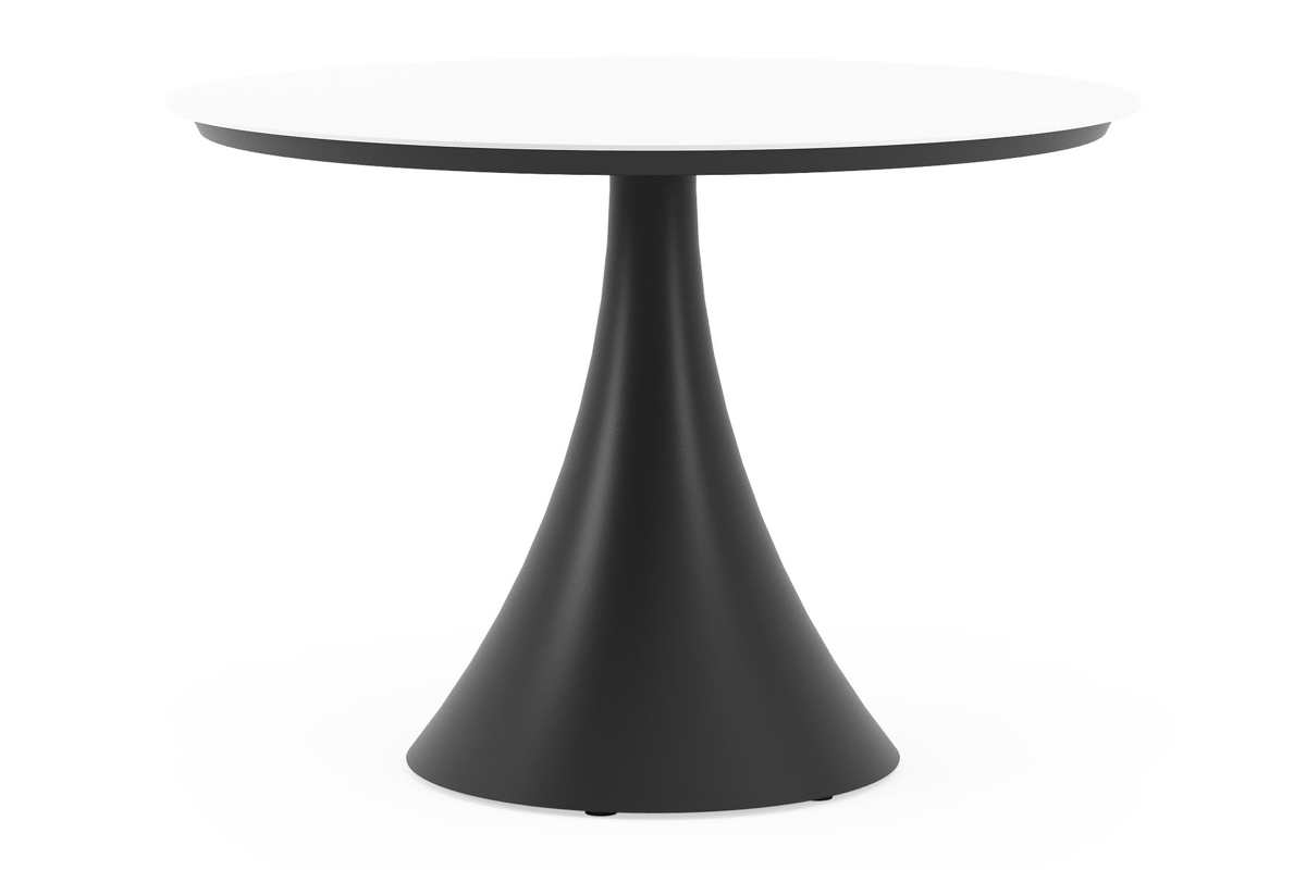 Fano tuintafel rond in zwart aluminium en volkeramiek Arctic White - Dia. 110 x H 75 cm | Exterioo