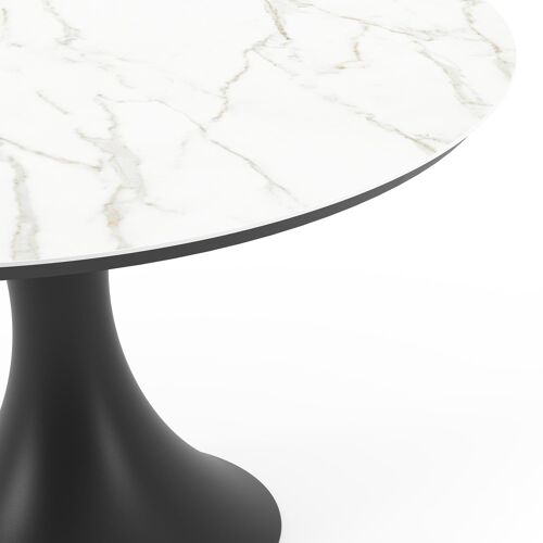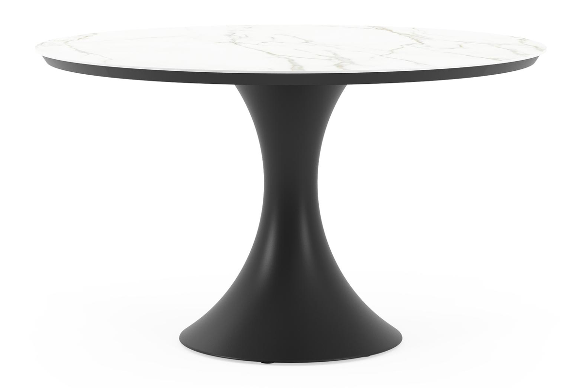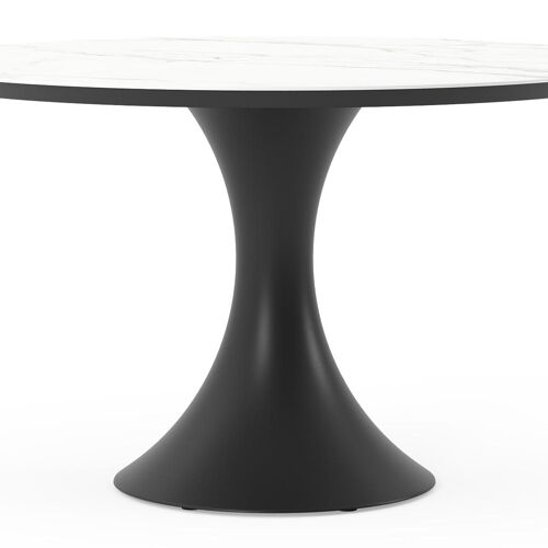 Fano tuintafel rond in zwart aluminium en volkeramiek Calacatta - Dia. 130 x H 75 cm | Exterioo