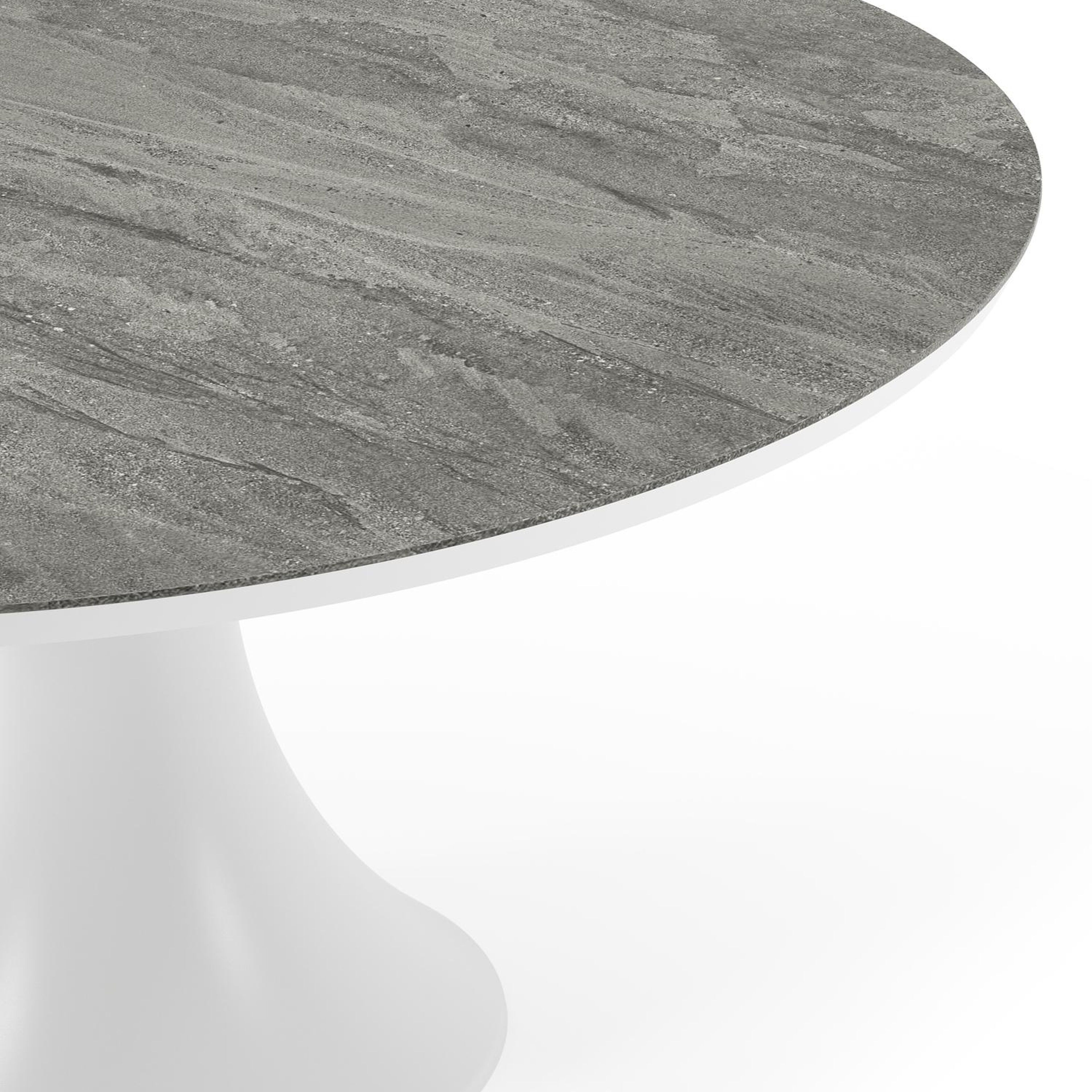 Fano tuintafel rond in wit aluminium en volkeramiek Aspen Grey - Dia. 148 x H 75 cm | Exterioo tuinmeubelen