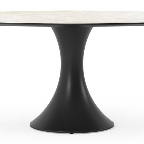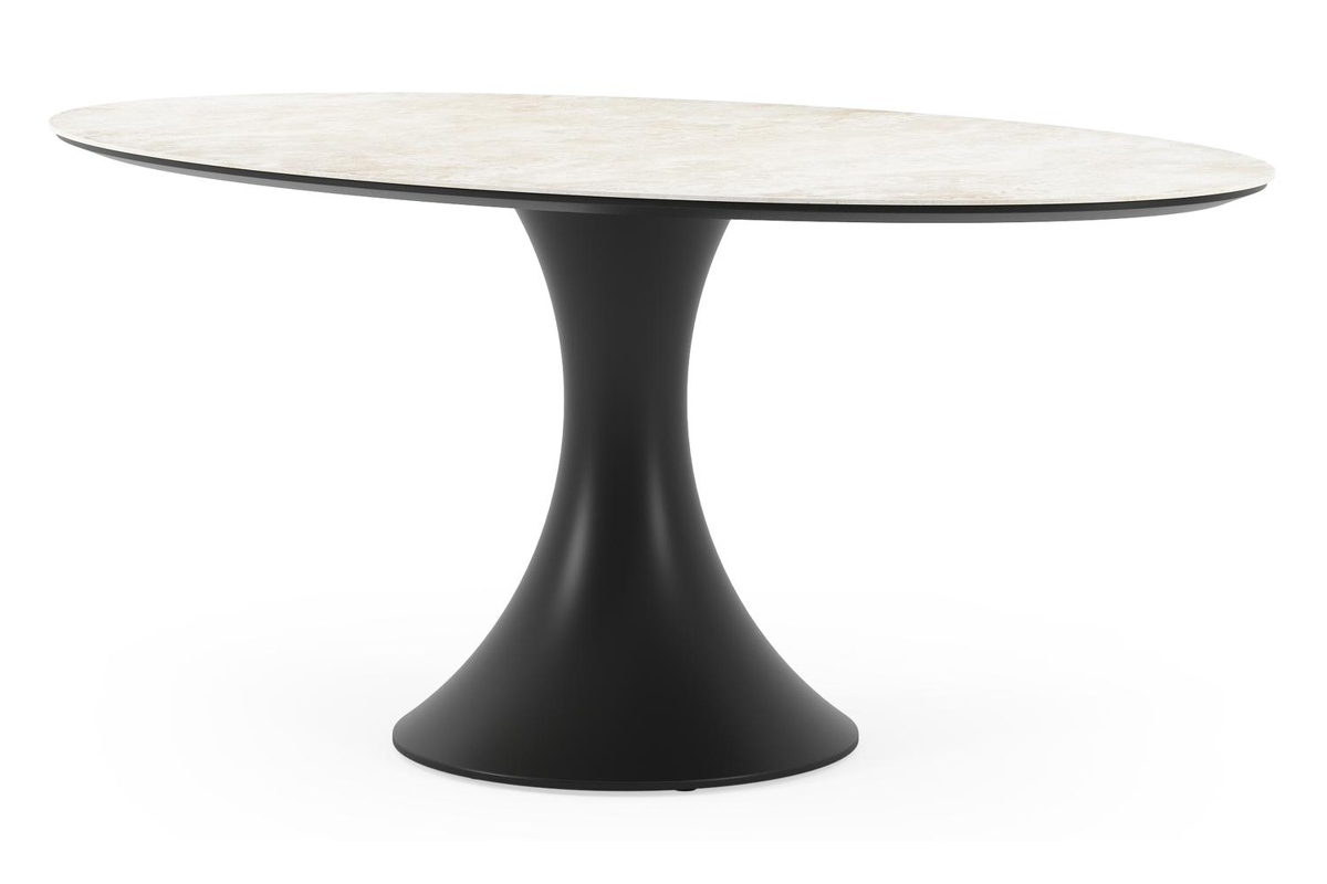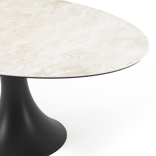 De Fano collectie onderscheidt zich door zijn trendy ovaal tafel met de kenmerkende trompetpoot. Deze eigentijdse tafel biedt niet alleen een modieuze uitstraling, maar creëert ook een gezellige tafelbeleving, waarbij mensen tegenover elkaar kunnen zitten.