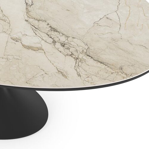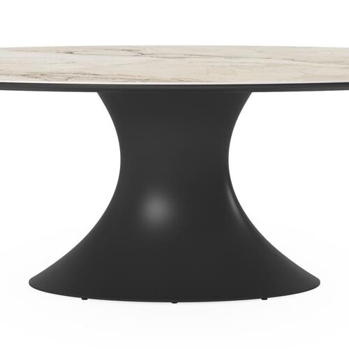 De Fano collectie onderscheidt zich door zijn trendy ronde tafel met de kenmerkende trompetpoot. Deze eigentijdse tafel biedt niet alleen een modieuze uitstraling, maar creëert ook een gezellige tafelbeleving, waarbij mensen tegenover elkaar kunnen zitten.