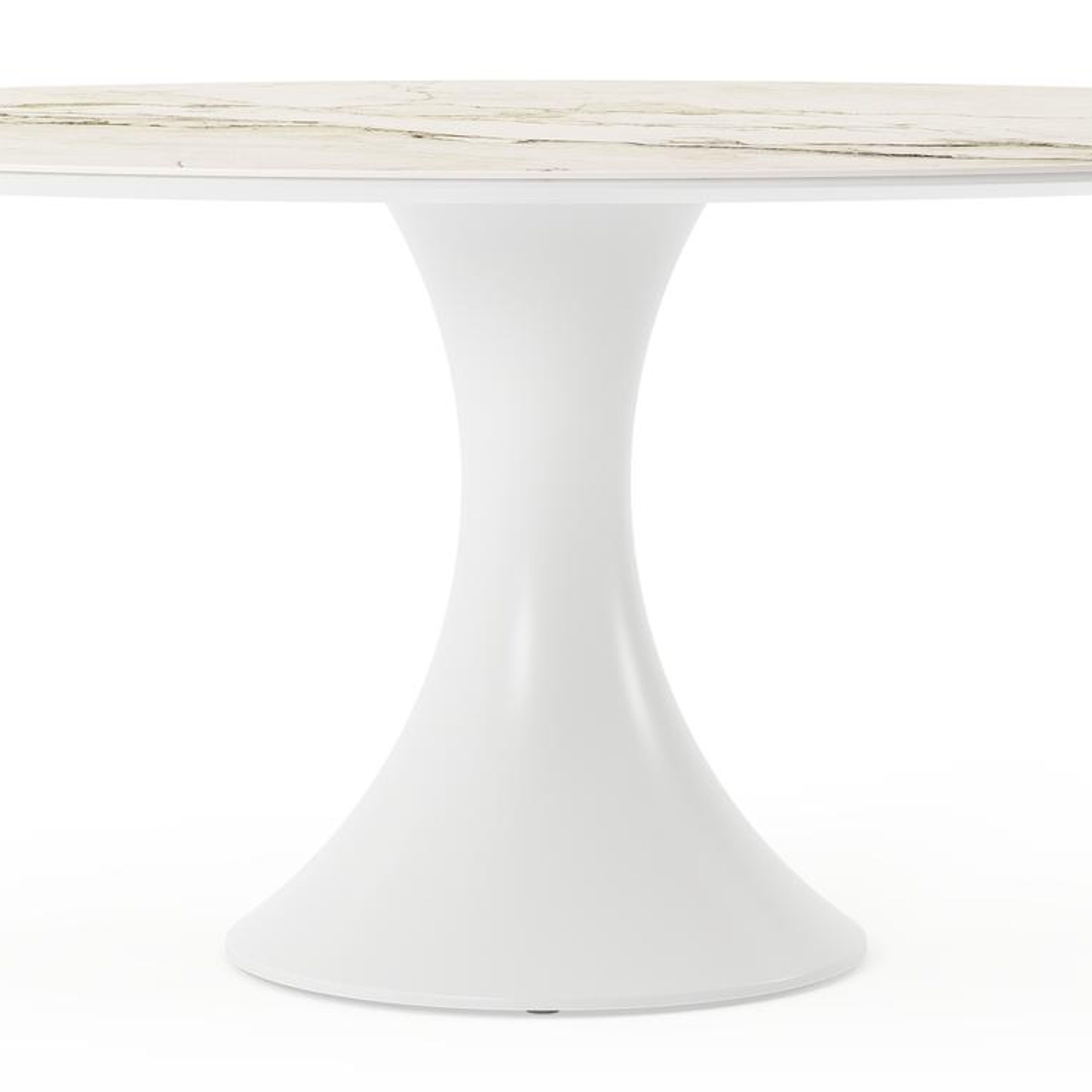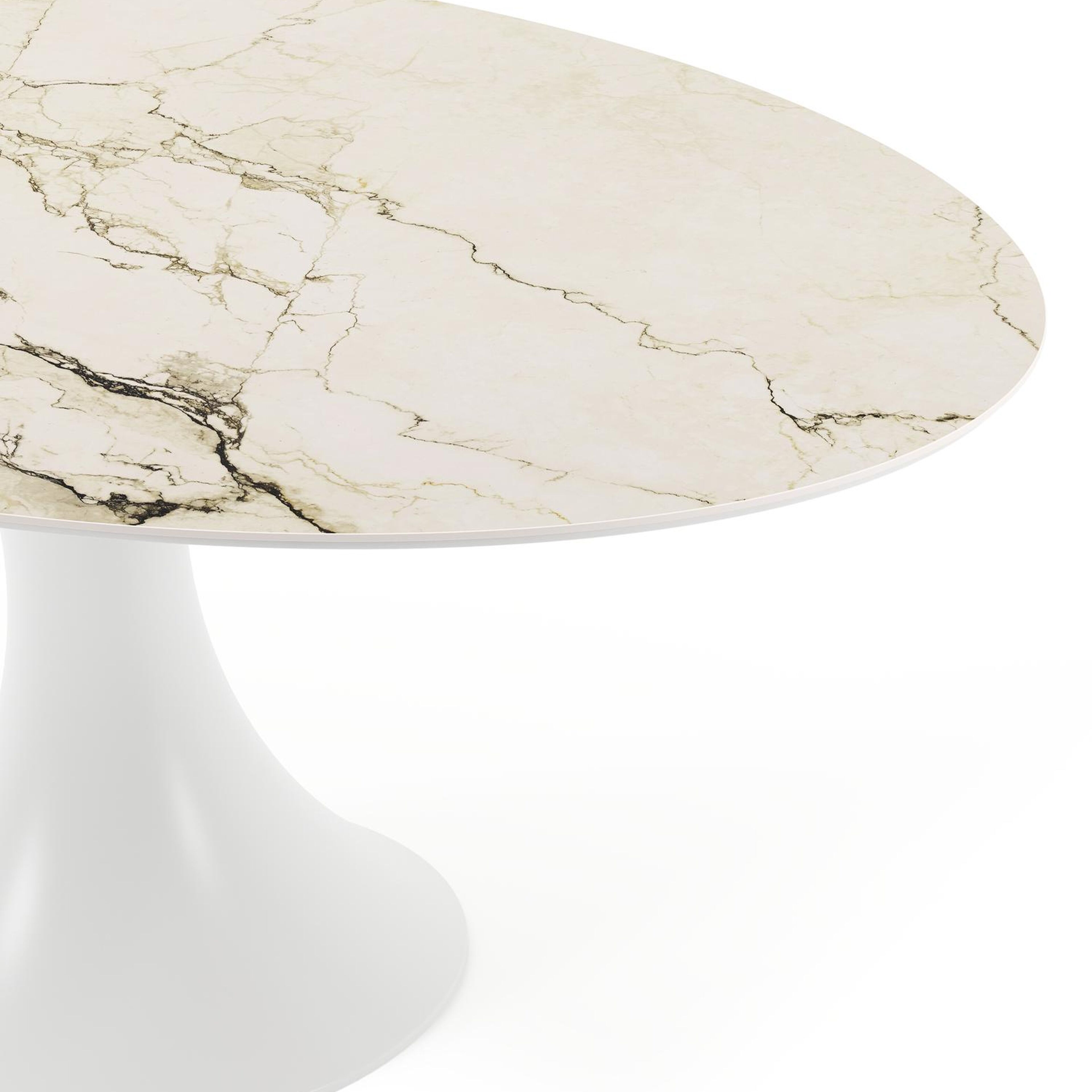 De Fano collectie onderscheidt zich door zijn trendy ronde tafel met de kenmerkende trompetpoot. Deze eigentijdse tafel biedt niet alleen een modieuze uitstraling, maar creëert ook een gezellige tafelbeleving, waarbij mensen tegenover elkaar kunnen zitten.