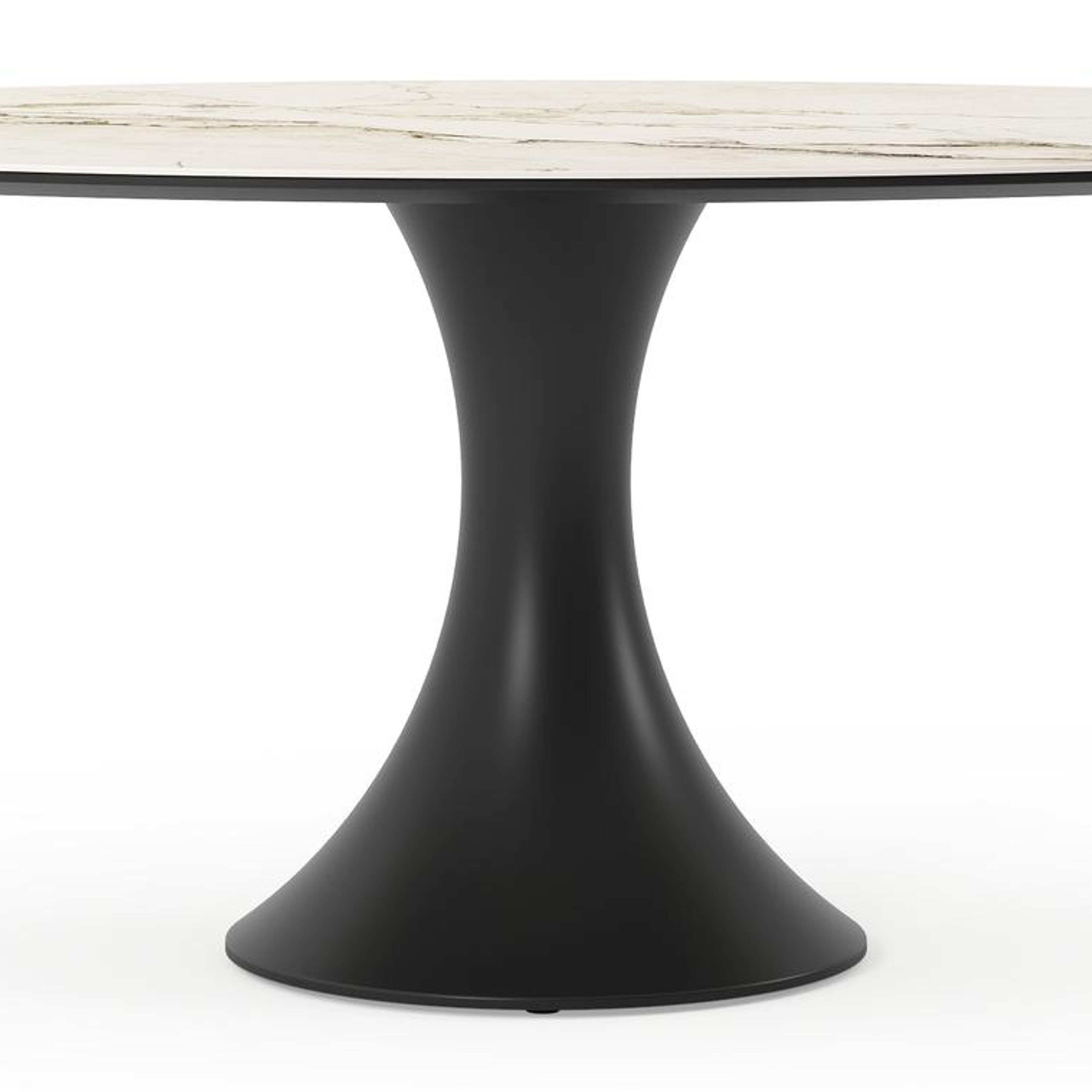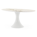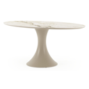 De Fano collectie onderscheidt zich door zijn trendy ronde tafel met de kenmerkende trompetpoot. Deze eigentijdse tafel biedt niet alleen een modieuze uitstraling, maar creëert ook een gezellige tafelbeleving, waarbij mensen tegenover elkaar kunnen zitten.