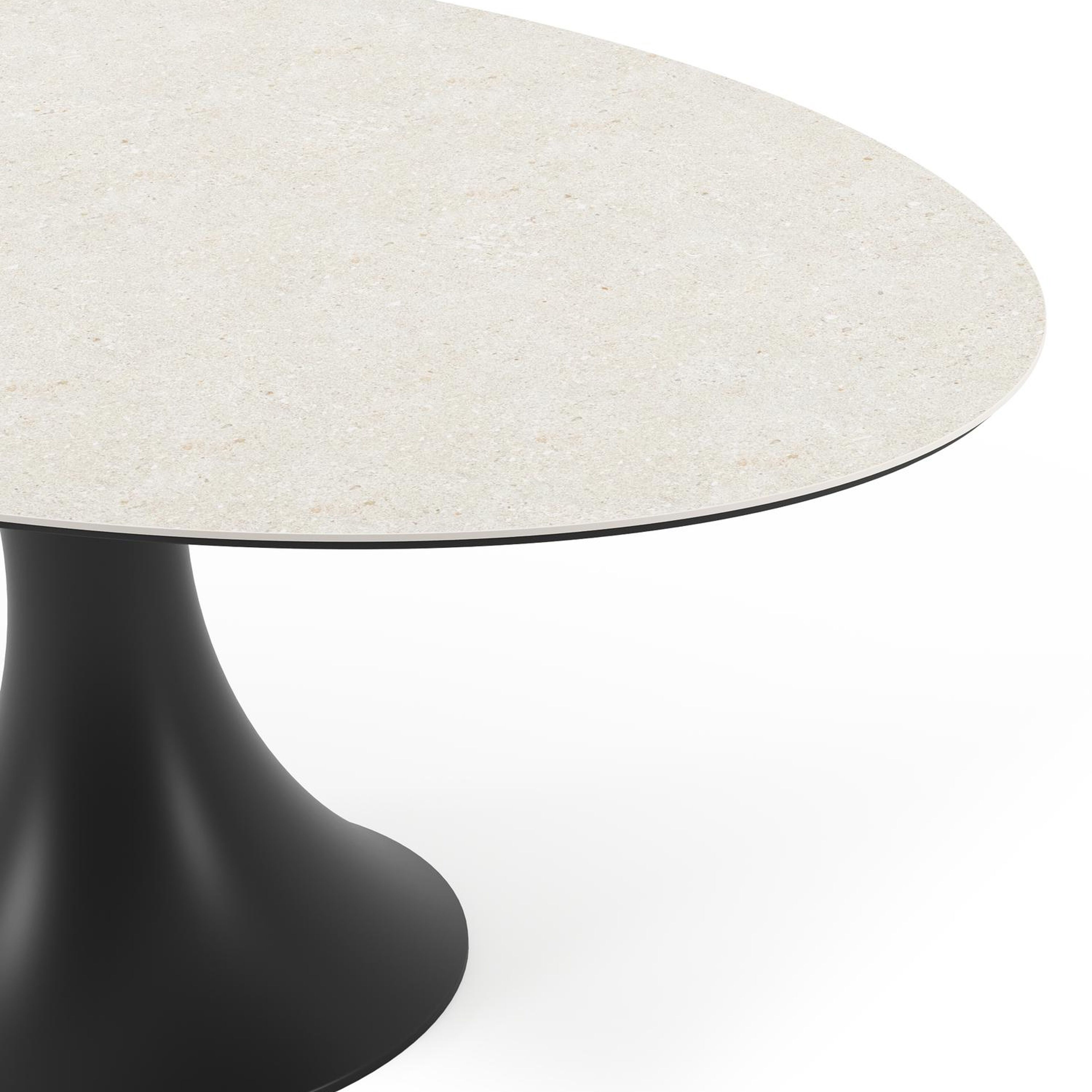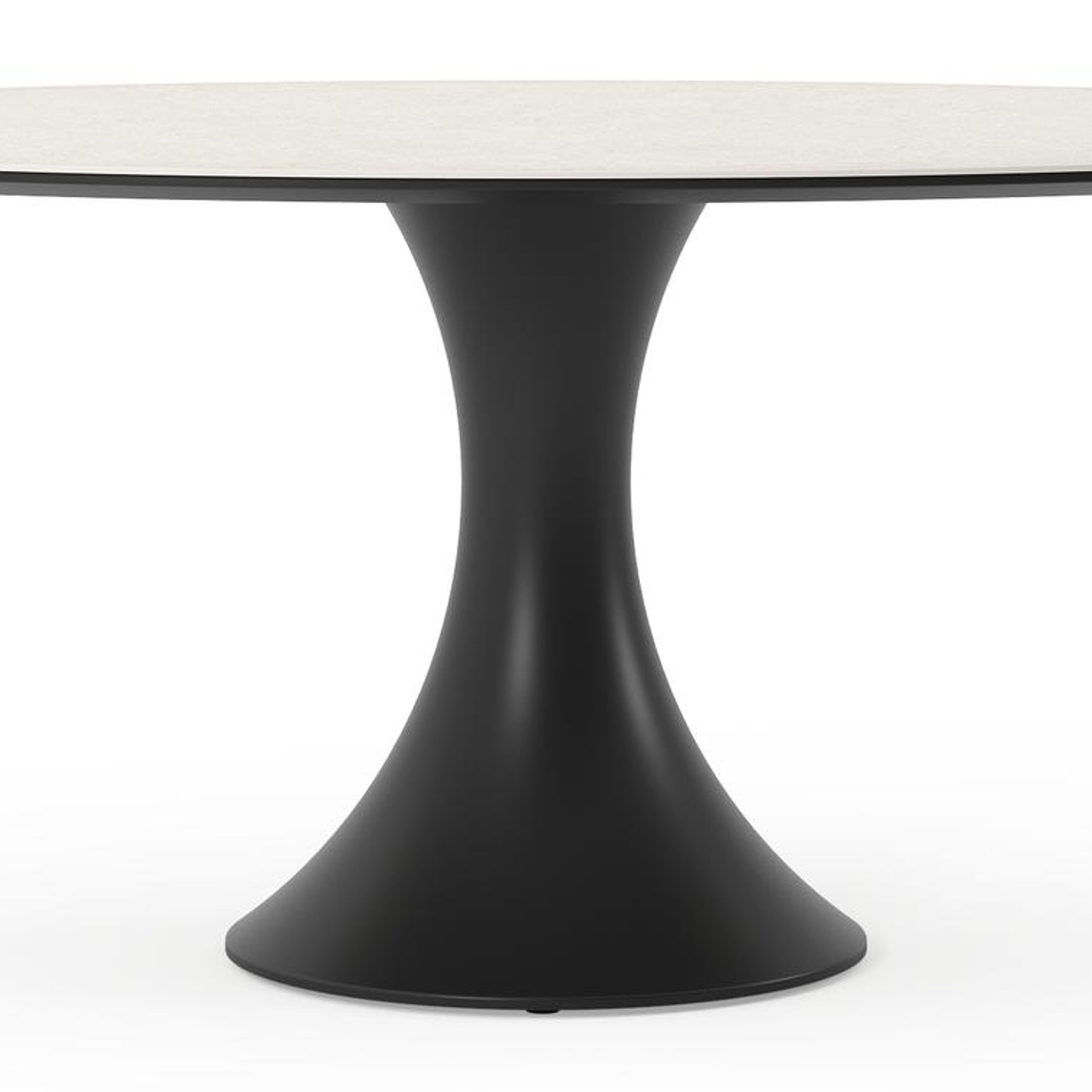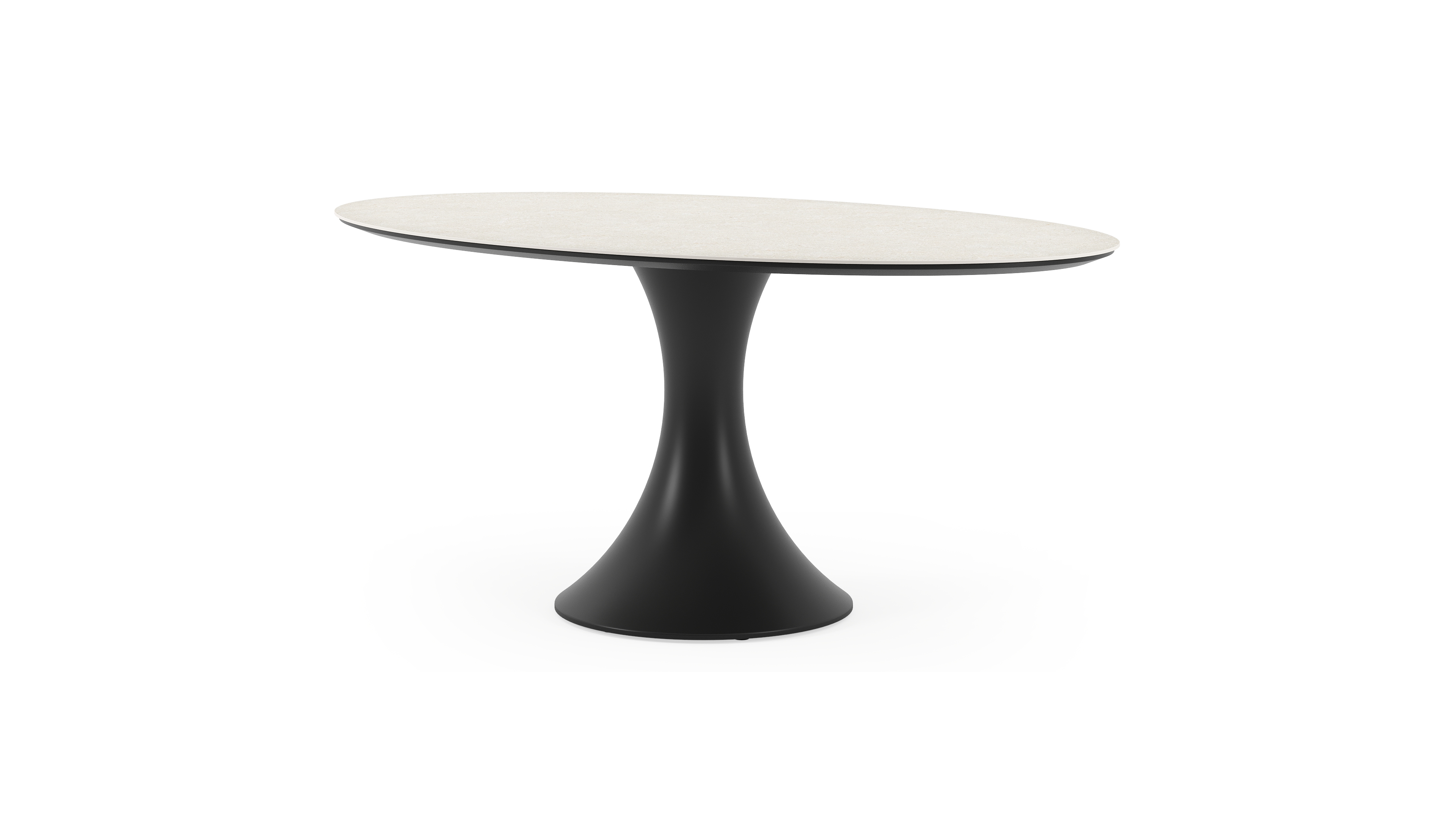 De Fano collectie onderscheidt zich door zijn trendy ronde tafel met de kenmerkende trompetpoot. Deze eigentijdse tafel biedt niet alleen een modieuze uitstraling, maar creëert ook een gezellige tafelbeleving, waarbij mensen tegenover elkaar kunnen zitten.