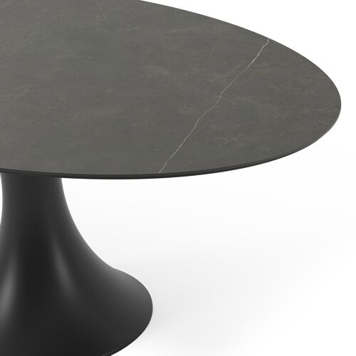 De Fano collectie onderscheidt zich door zijn trendy ronde tafel met de kenmerkende trompetpoot. Deze eigentijdse tafel biedt niet alleen een modieuze uitstraling, maar creëert ook een gezellige tafelbeleving, waarbij mensen tegenover elkaar kunnen zitten.