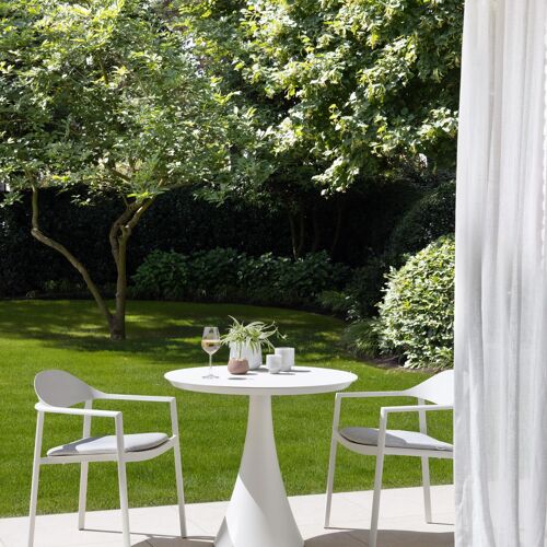 Het frame van de tafel is gemaakt uit roestvrij aluminium, een sterk, maar toch licht materiaal dat makkelijk verplaatsbaar is. Het oppervlak is glad afgewerkt waardoor het geen vuil aantrekt en onderhoudsvriendelijk is. De poedercoating zorgt voor de UV- en weerbestendigheid van je meubel.