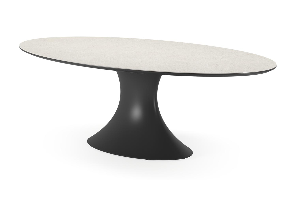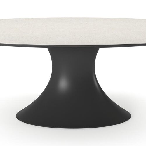 De ronde Fano tafel is een trendy tafel dankzij zijn typische trompetpoot. Bovendien heb je aan een ronde tafel een gezellige tafelbeleving omdat je tegenover elkaar kunt zitten. Het frame is gemaakt van aluminium een licht, maar sterk en roestvrij materiaal dat zeer geschikt is voor tuinmeubelen. Deze tafel is afgewerkt met een Shilin tafelblad. Dit is een nieuwkomer in ons assortiment. De aardse kleurschakeringen passen perfect aan bij onze nieuwe outdoortrends. In het tafelblad is er een licht reliëf te voelen, waardoor het Shilin blad de look & feel heeft van echte natuursteen. In het blad is een fijne glinster aanwezig. Het voordeel van volkeramische tafelbladen is dat ze krasbestendig zijn en bestand zijn tegen alle weersomstandigheden.