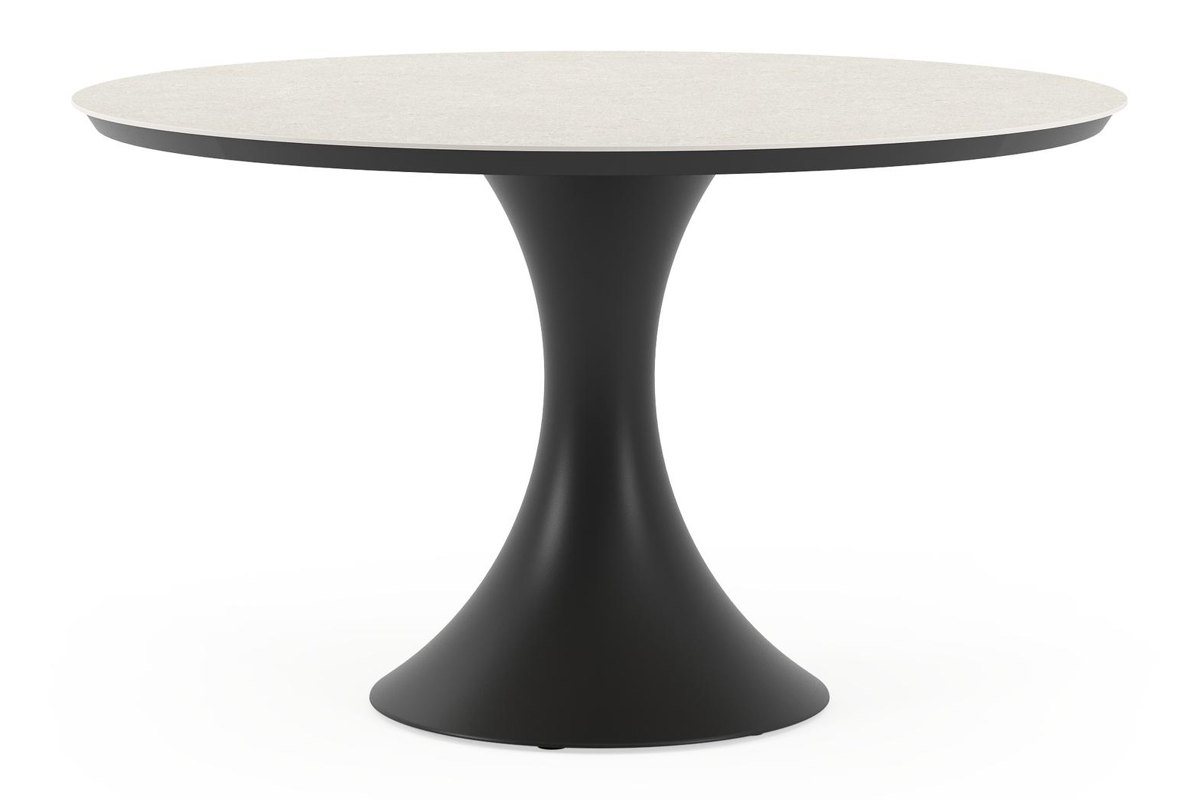 De ronde Fano tafel is een trendy tafel dankzij zijn typische trompetpoot. Bovendien heb je aan een ronde tafel een gezellige tafelbeleving omdat je tegenover elkaar kunt zitten. Het frame is gemaakt van aluminium een licht, maar sterk en roestvrij materiaal dat zeer geschikt is voor tuinmeubelen. Deze tafel is afgewerkt met een Shilin tafelblad. Dit is een nieuwkomer in ons assortiment. De aardse kleurschakeringen passen perfect aan bij onze nieuwe outdoortrends. In het tafelblad is er een licht reliëf te voelen, waardoor het Shilin blad de look & feel heeft van echte natuursteen. In het blad is een fijne glinster aanwezig. Het voordeel van volkeramische tafelbladen is dat ze krasbestendig zijn en bestand zijn tegen alle weersomstandigheden.