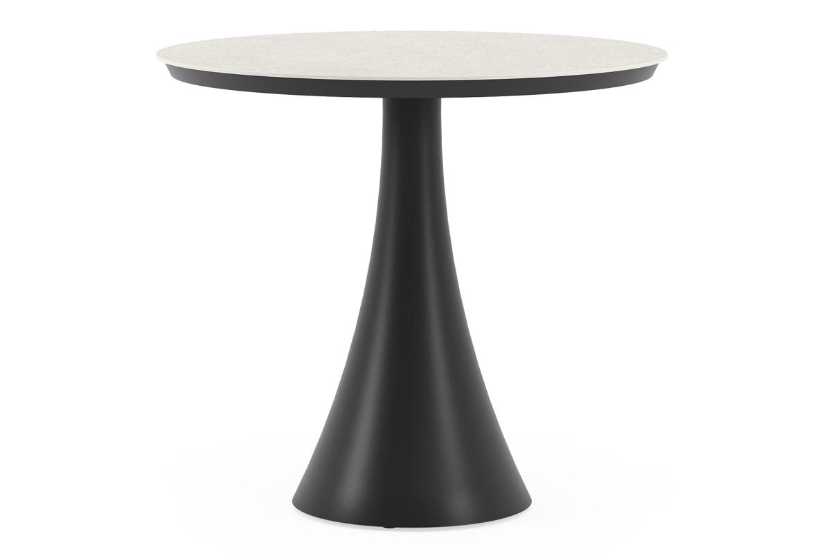 De ronde Fano tafel is een trendy tafel dankzij zijn typische trompetpoot. Bovendien heb je aan een ronde tafel een gezellige tafelbeleving omdat je tegenover elkaar kunt zitten. Het frame is gemaakt van aluminium een licht, maar sterk en roestvrij materiaal dat zeer geschikt is voor tuinmeubelen. Deze tafel is afgewerkt met een Shilin tafelblad. Dit is een nieuwkomer in ons assortiment. De aardse kleurschakeringen passen perfect aan bij onze nieuwe outdoortrends. In het tafelblad is er een licht reliëf te voelen, waardoor het Shilin blad de look & feel heeft van echte natuursteen. In het blad is een fijne glinster aanwezig. Het voordeel van volkeramische tafelbladen is dat ze krasbestendig zijn en bestand zijn tegen alle weersomstandigheden.