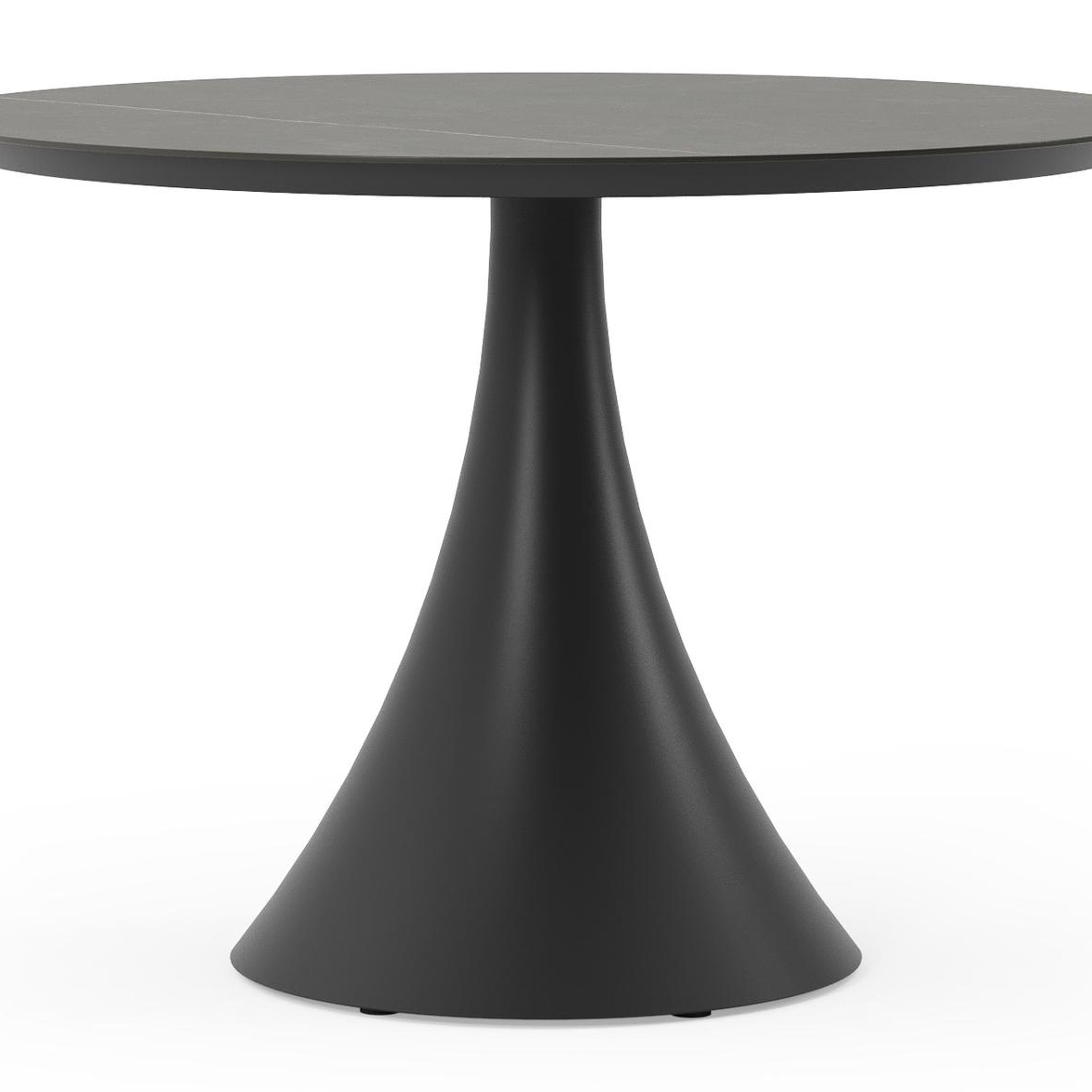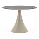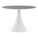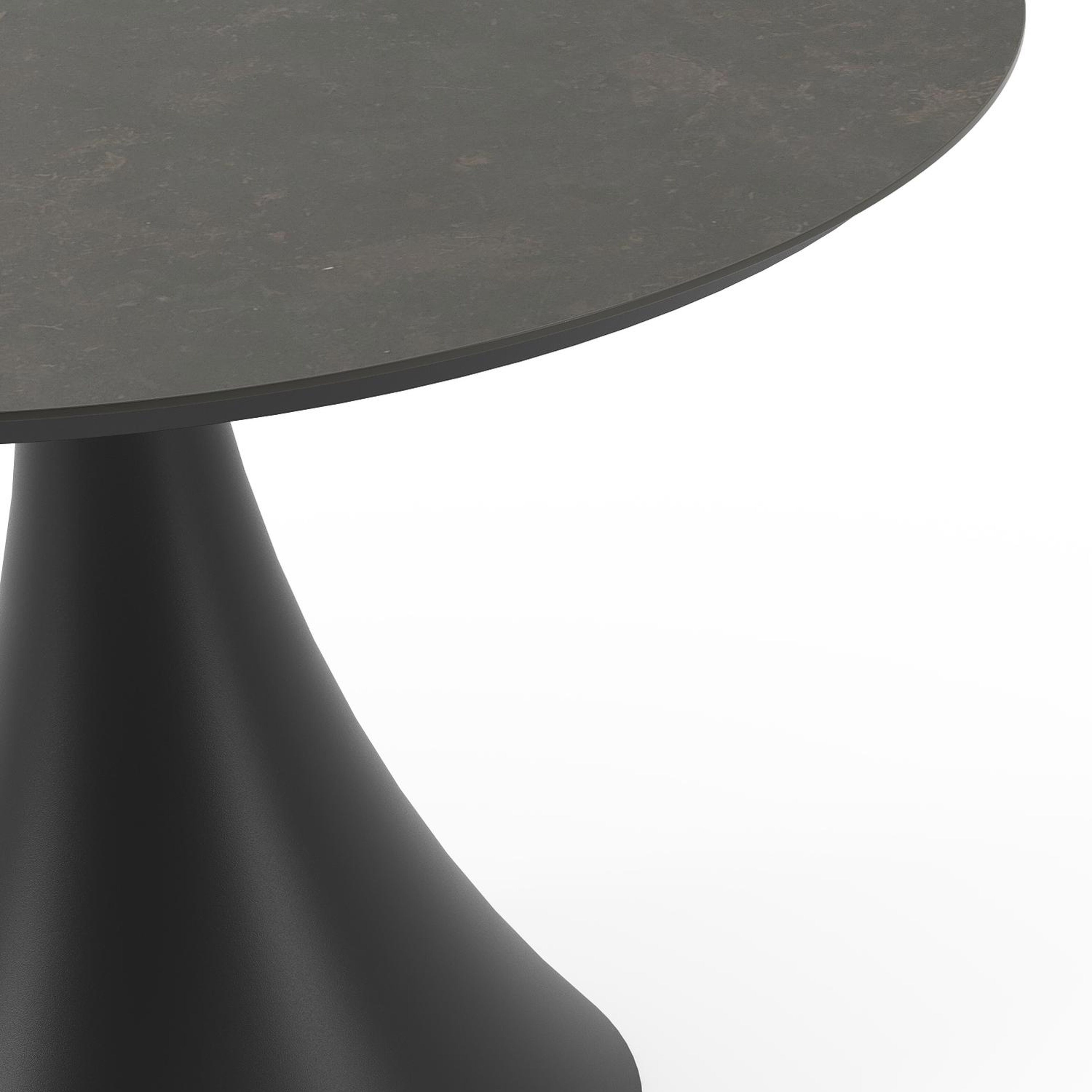 De ronde Fano tafel is een trendy tafel dankzij zijn typische trompetpoot. Bovendien heb je aan een ronde tafel een gezellige tafelbeleving omdat je tegenover elkaar kunt zitten. Het frame is gemaakt van aluminium een licht, maar sterk en roestvrij materiaal dat zeer geschikt is voor tuinmeubelen. Deze tafel is afgewerkt met een Calatorao tafelblad. Die is geïnspireerd op een grijze kalksteen. Het blad heeft rustige marmerlook dankzij de gouden aders op de donkergrijze kleurschakeringen. Het voordeel van volkeramische tafelbladen is dat ze krasbestendig zijn en bestand zijn tegen alle weersomstandigheden.