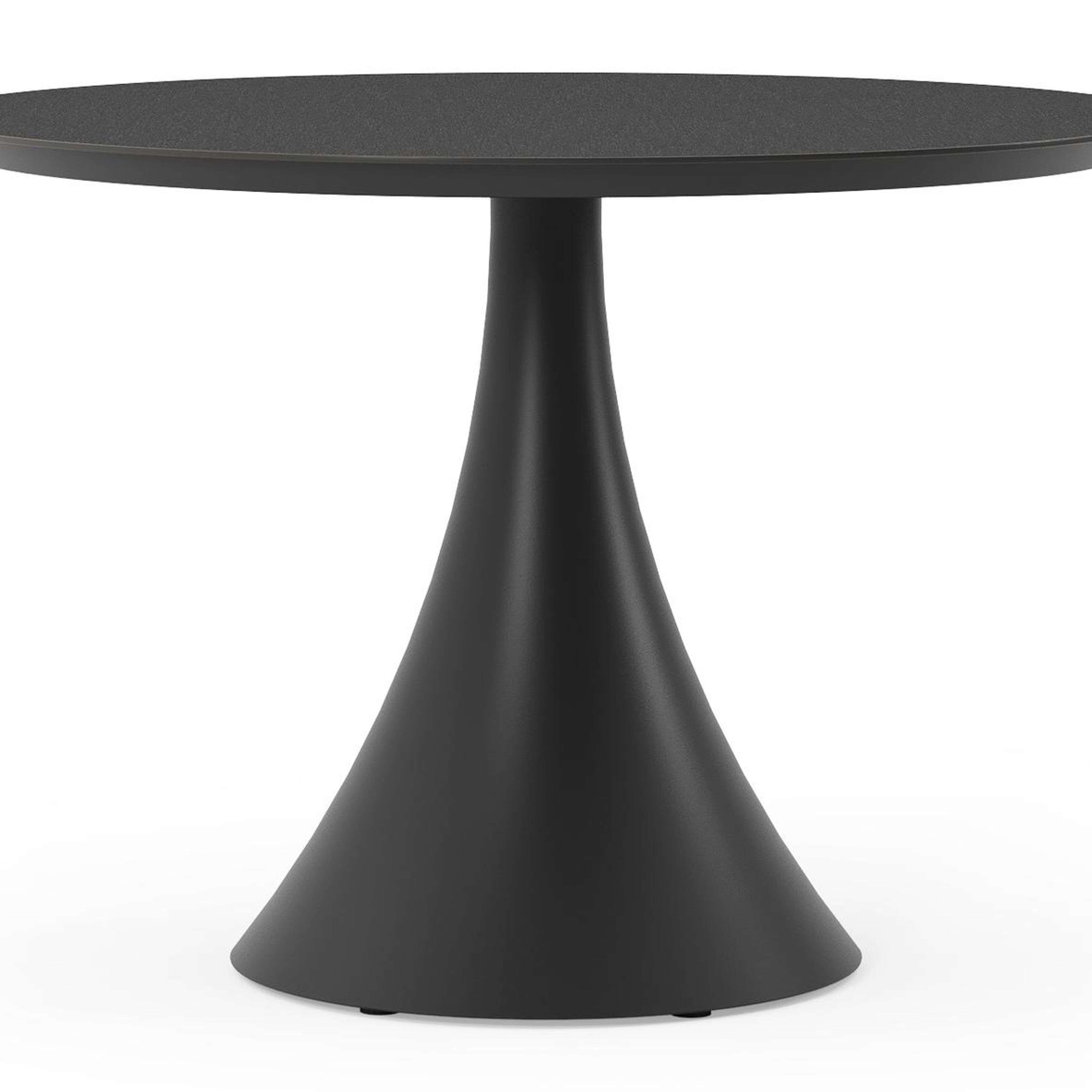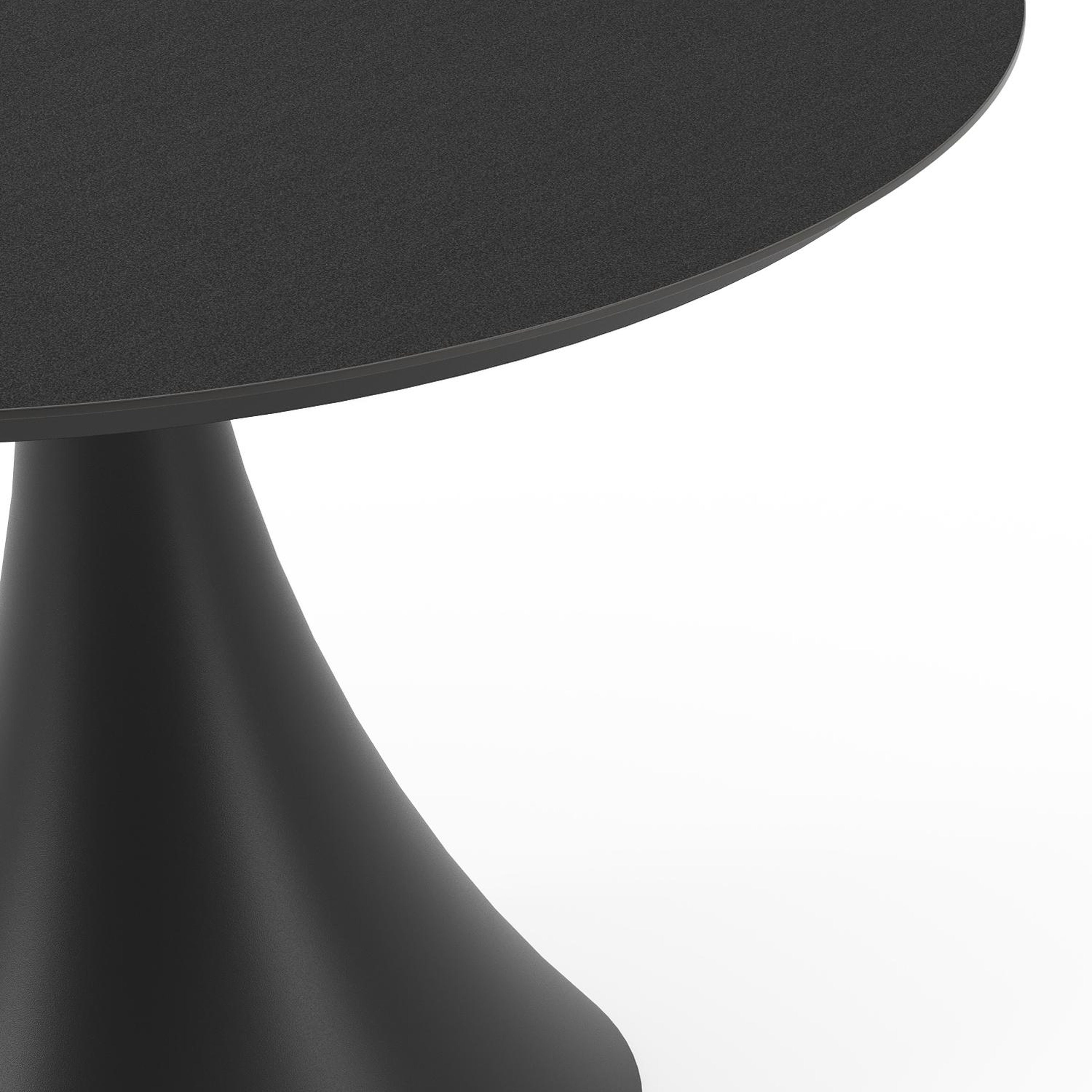 De ronde Fano tafel is een trendy tafel dankzij zijn typische trompetpoot. Bovendien heb je aan een ronde tafel een gezellige tafelbeleving omdat je tegenover elkaar kunt zitten. Het frame is gemaakt van aluminium een licht, maar sterk en roestvrij materiaal dat zeer geschikt is voor tuinmeubelen. Deze tafel is afgewerkt met een Nero Black tafelblad. Dit tafelblad is een aanrader voor wie houdt van minimalistisch en tijdloos design. Zoals de naam doet vermoeden is dit een vrij effen zwart tafelblad met een lichte spikkel in. Het voordeel van volkeramische tafelbladen is dat ze krasbestendig zijn en bestand zijn tegen alle weersomstandigheden.