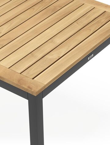 Een tafelblad uit teak staat gelijk aan bijzondere kwaliteit en natuurlijk design. Teak is een kwalitatieve houtsoort gekenmerkt door zijn hardheid. Aangezien hout leeft, kan de structuur of kleur licht anders zijn dan op het beeld weergegeven.