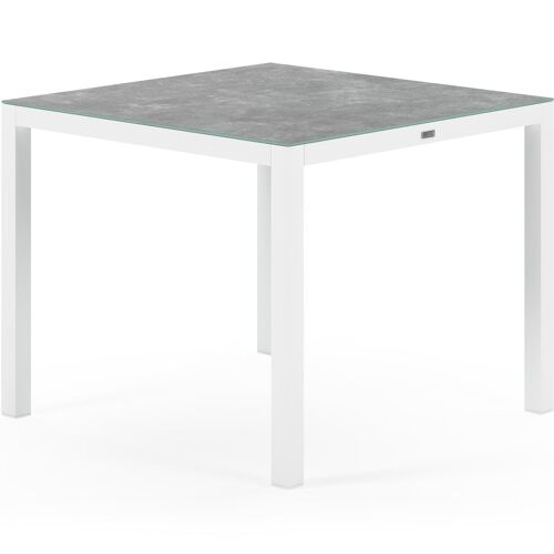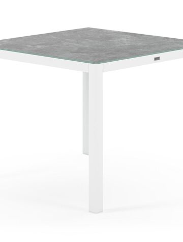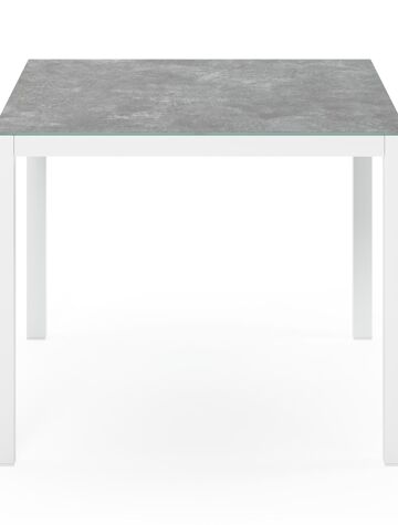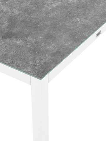 Een tafelblad uit keramisch glas bestaat uit een glazen oppervlak waarop een keramische laag gebakken wordt. Je krijgt zo de look van een volkeramisch blad op het glas. Dankzij de keramische laag is het tafelblad krasbestendig en eenvoudig schoon te maken.