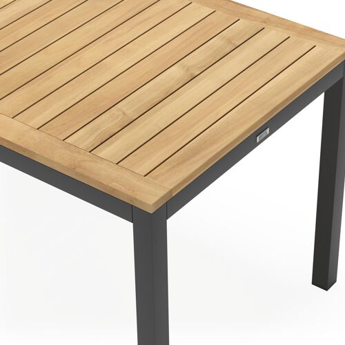 Feltro tuintafel in zwart aluminium en teak naturel - L 140 x B 80 x H 73 cm | Exterioo
