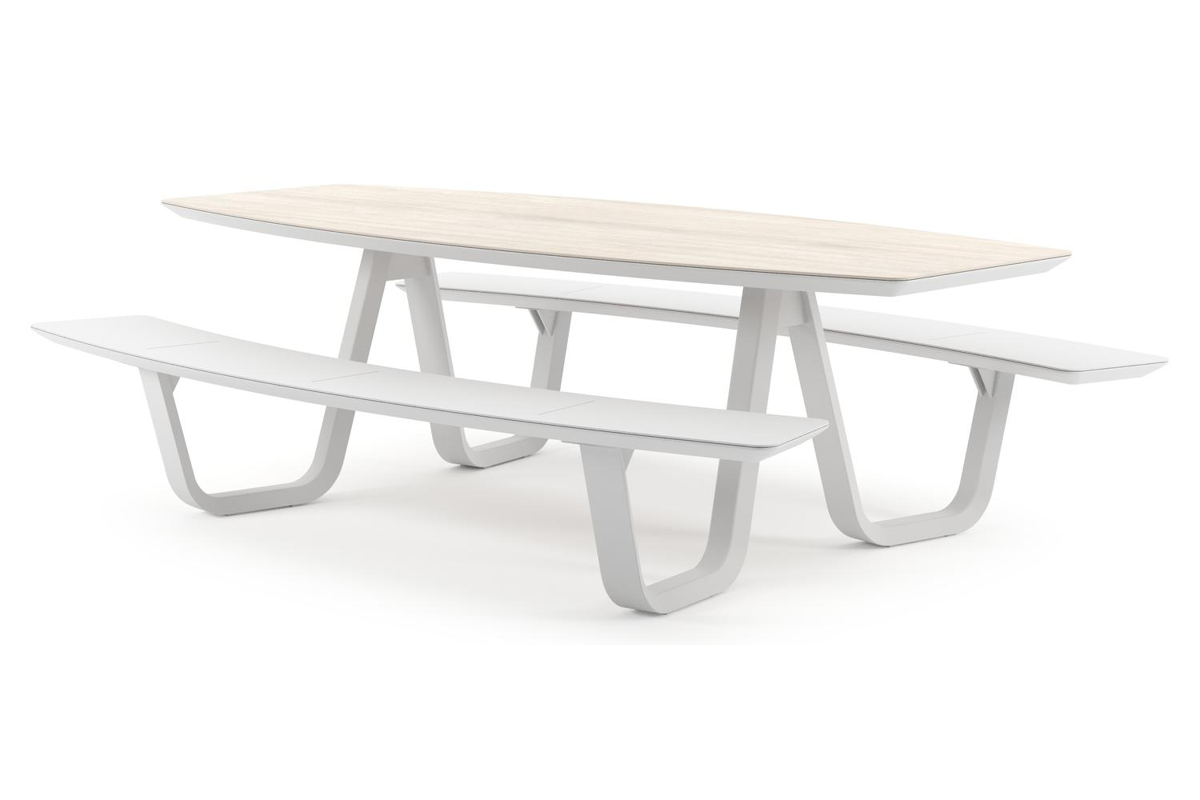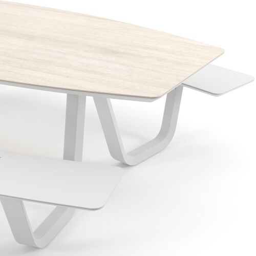 Forno picknicktafel bootvorm in wit aluminium en volkeramiek Travertino Bianco - L 240 x B 181 x H 72 cm | Exterioo