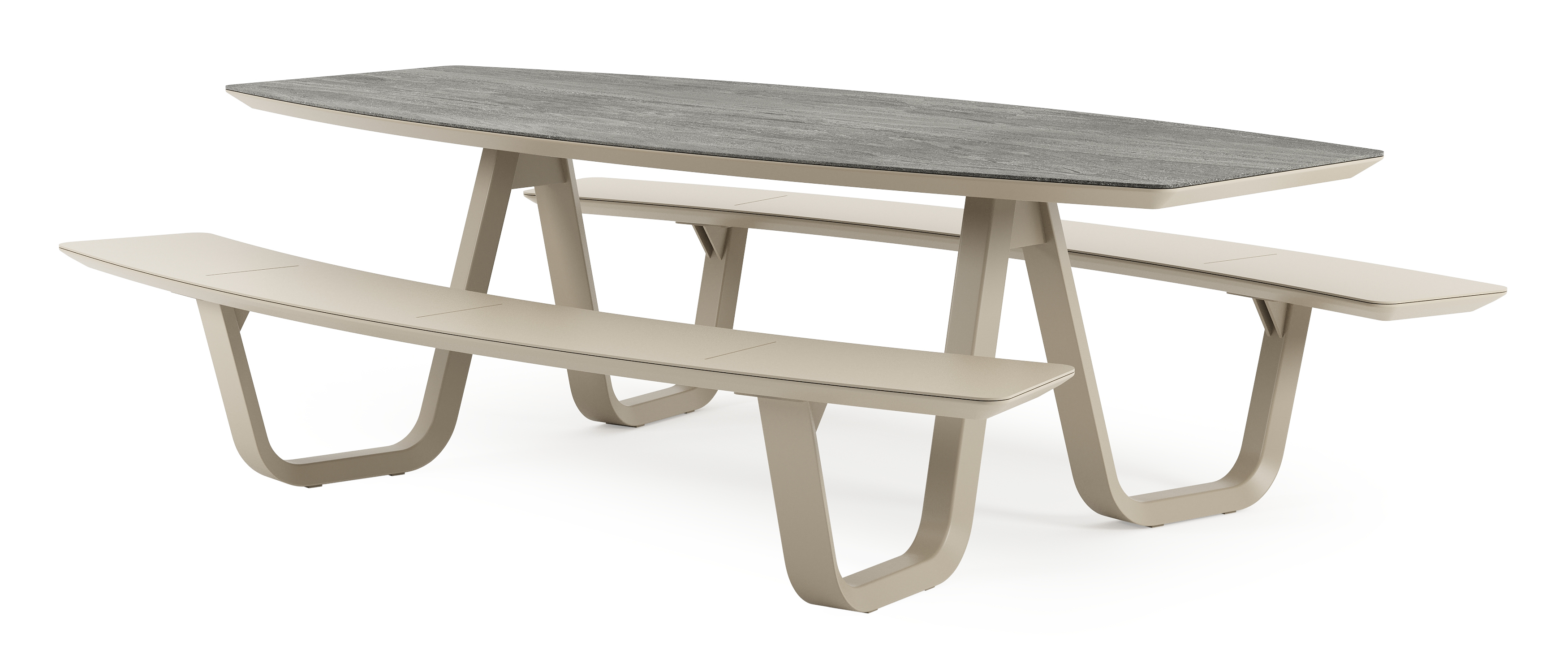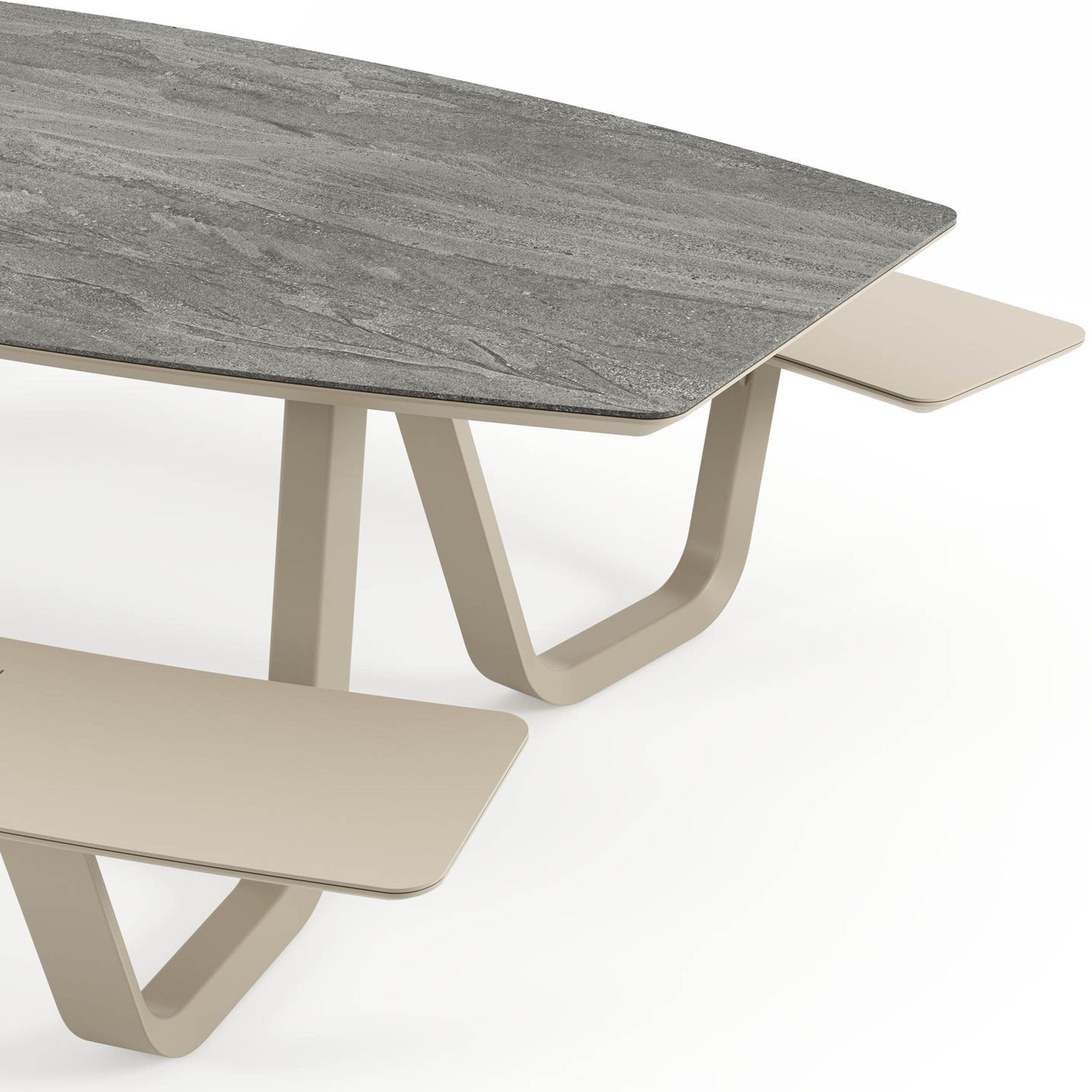 Forno picknicktafel bootvorm in beige aluminium en volkeramiek Aspen Grey - L 240 x B 181 x H 72 cm | Exterioo tuinmeubelen