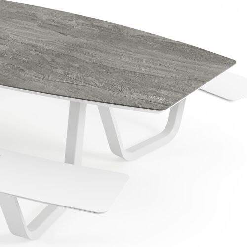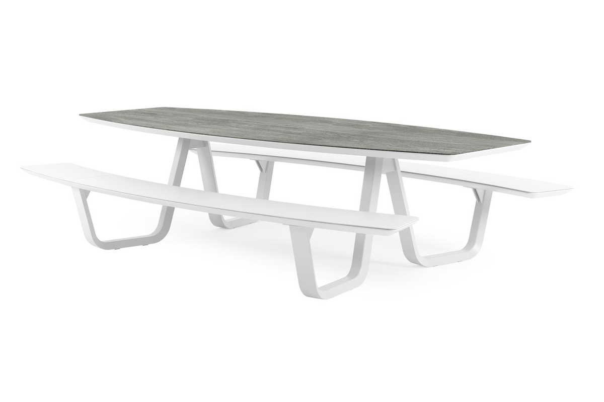 Forno picknicktafel bootvorm in wit aluminium en volkeramiek Aspen Grey - L 280 x B 192 x H 72 cm | Exterioo