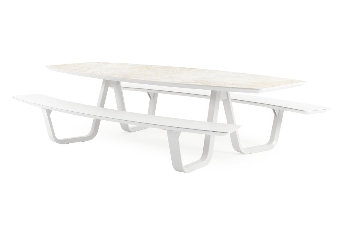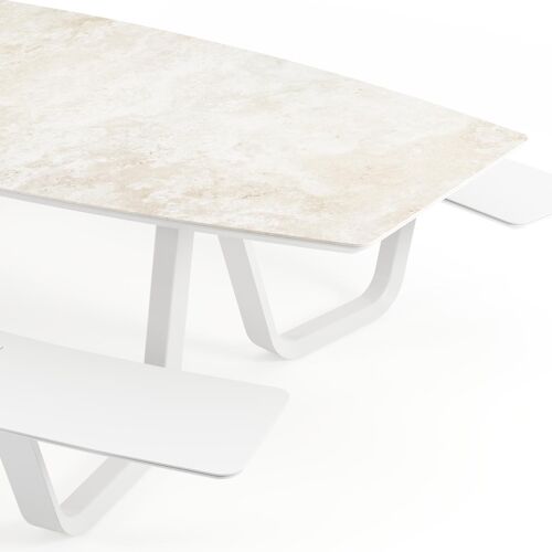 De Forno picknicktafel kenmerkt zich door zijn afgeronde vormen. Zowel het tafelblad als de banken hebben een bootvorm. De gebogen bank is makkelijk toegankelijk en voorziet plaats voor een groot gezelschap.