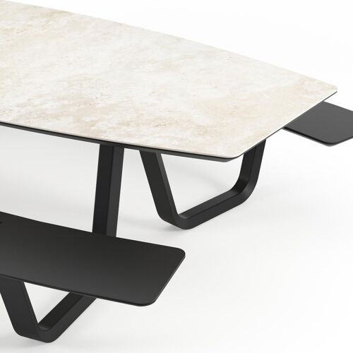 Forno picknicktafel bootvorm in zwart aluminium en volkeramiek Rapolano L 280 x B 192 cm | Exterioo
