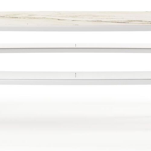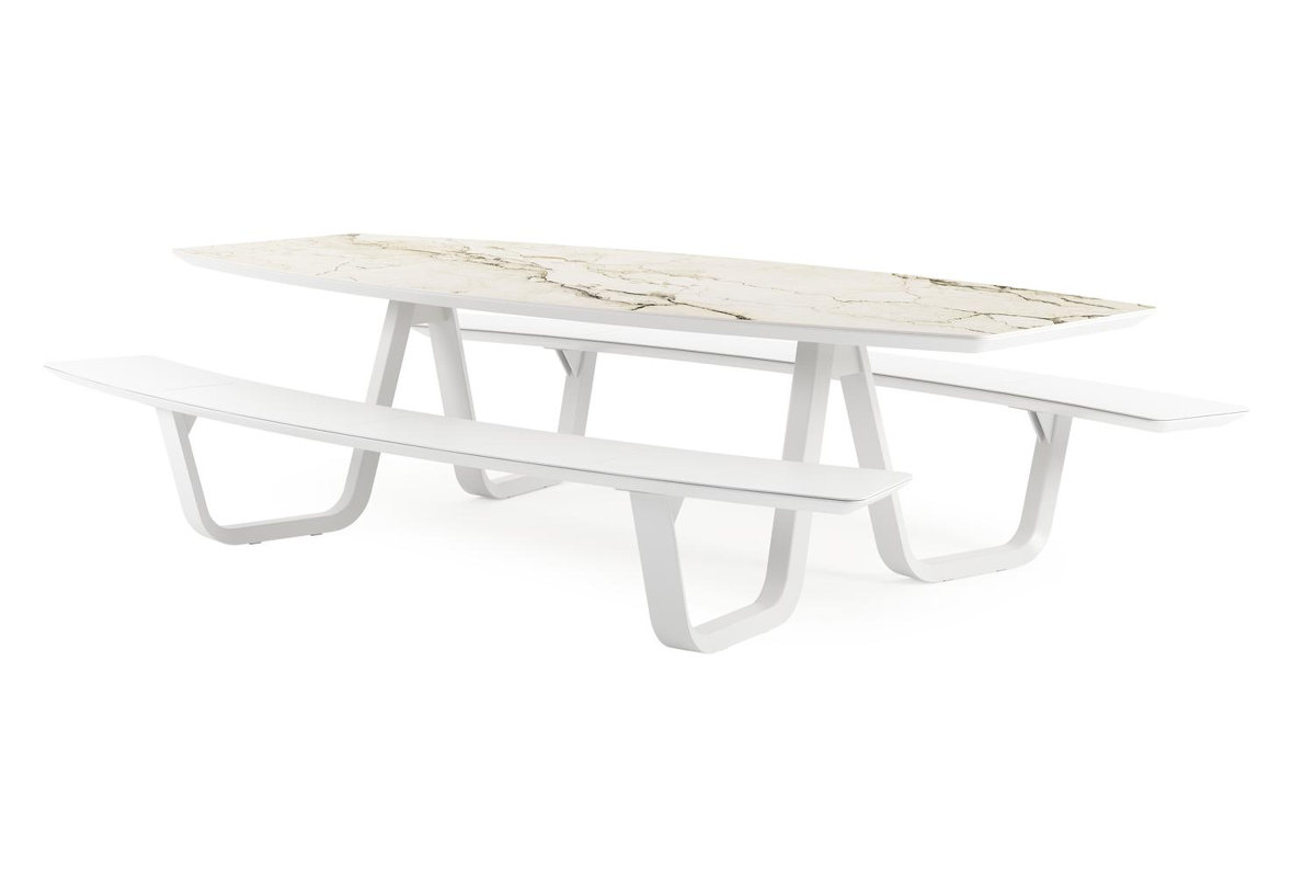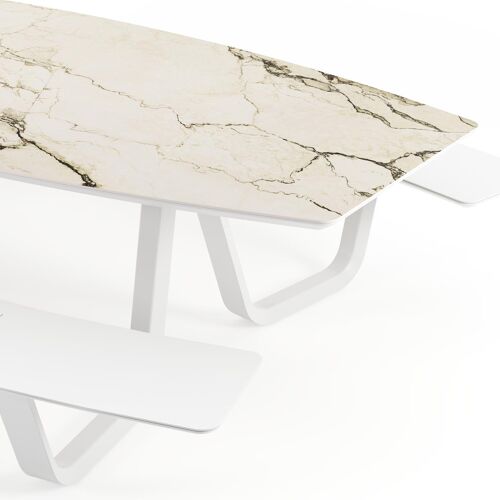 Forno picknicktafel bootvorm in wit aluminium en volkeramiek colorado dunes tafelblad - L 280 x B 192 x 72 cm | Exterioo