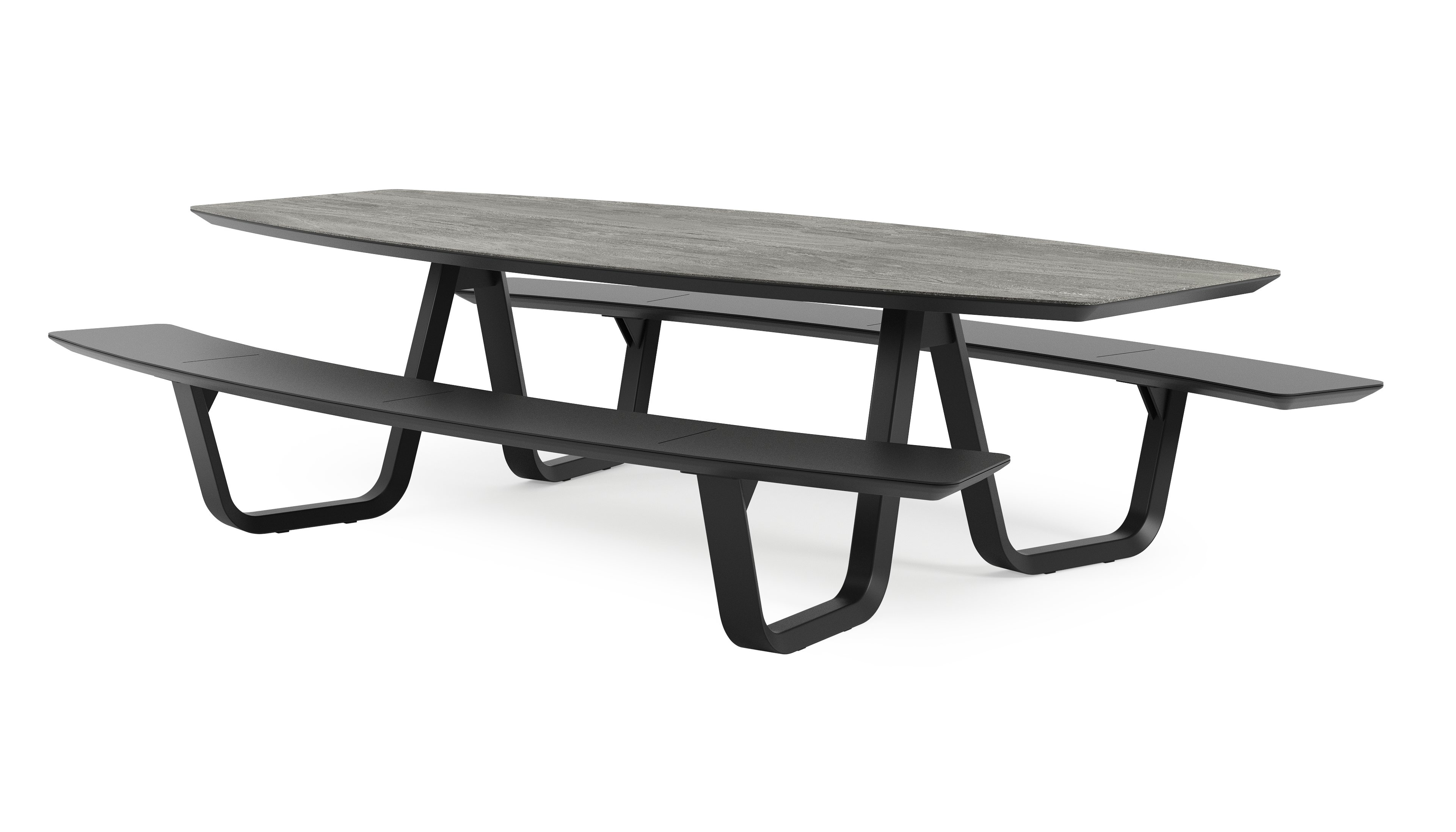 De Forno picknicktafel kenmerkt zich door zijn afgeronde vormen. Zowel het tafelblad als de banken hebben een bootvorm. De gebogen bank is makkelijk toegankelijk en voorziet plaats voor een groot gezelschap.