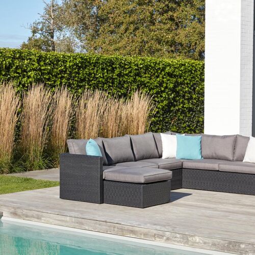 Gio loungezetel tussenstuk in zwart aluminium en zwart wicker met grijs polyester kussen | Exterioo