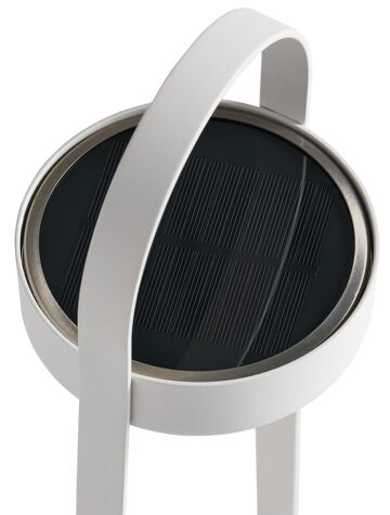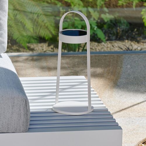 De Helio tafellamp is een stijlvol item die een gezellige sfeer brengt in jouw tuin. De staande lampjes zijn voorzien van LED-verlichting. Deze lamp laadt zichzelf op via zonne-energie of je kan ook gebruik maken van de USB-kabel.