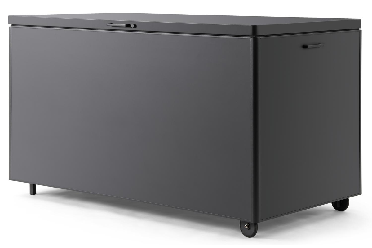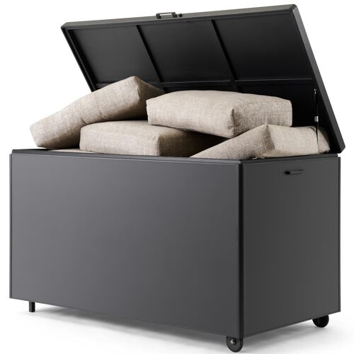 De Kussenbox is een hoogwaardige kussenbox is ideaal om jouw loungekussens in op te bergen. De kussenbox is gemaakt uit pvc en afgewerkt met een aluminium buitenzijde. Het deksel kan je makkelijk afsluiten en beschikt over een pompsysteem. Daarnaast is de kussenbox makkelijk te verplaatsen aan de hand van de wielen en handvaten. De bodem van de kussenbox is voorzien van verluchting.