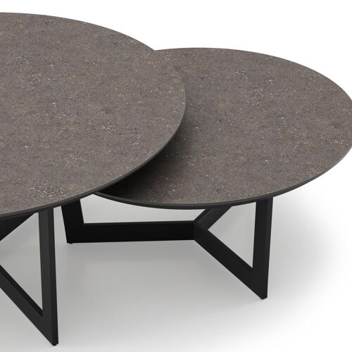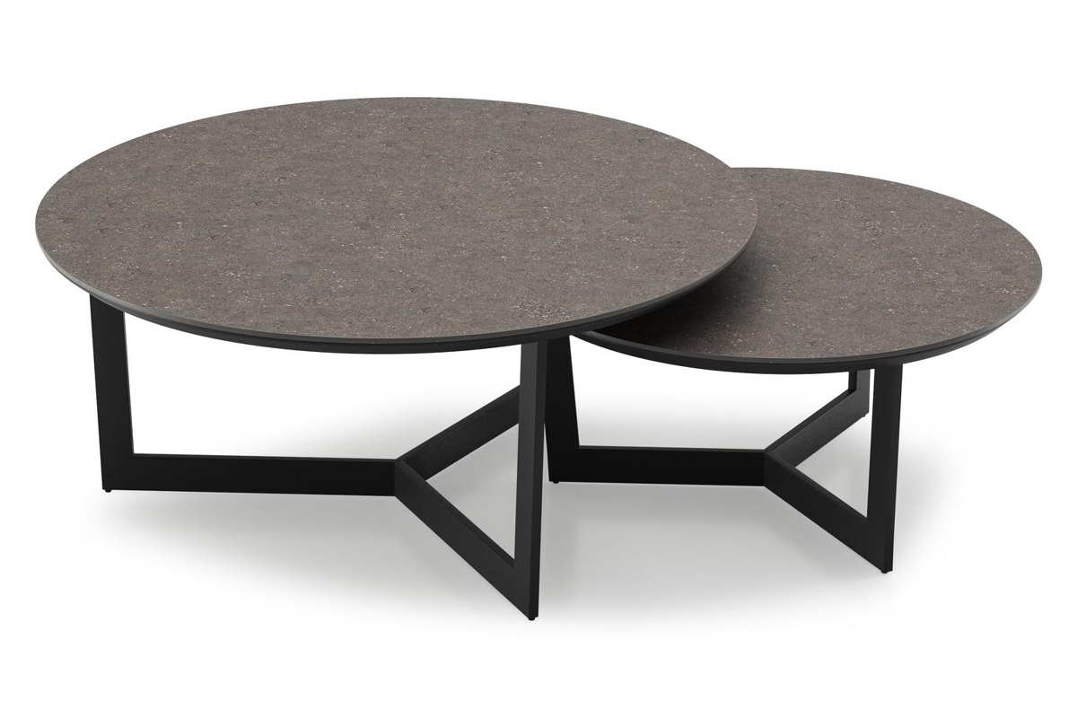 Lacrima loungetafels in zwart aluminium en wulong volkeramiek - Dia. 85/65 x H 35/30 cm | Exterioo