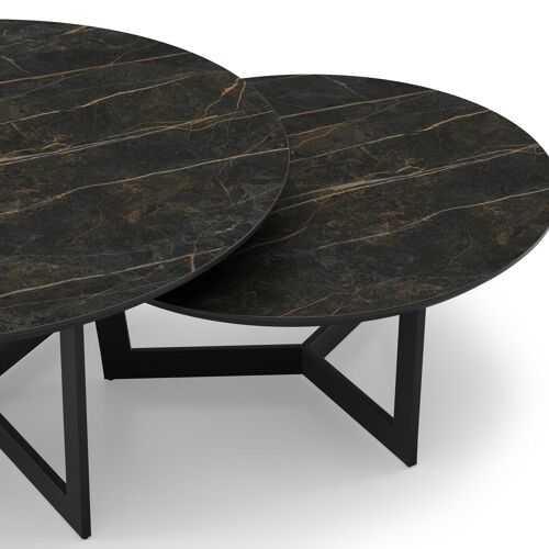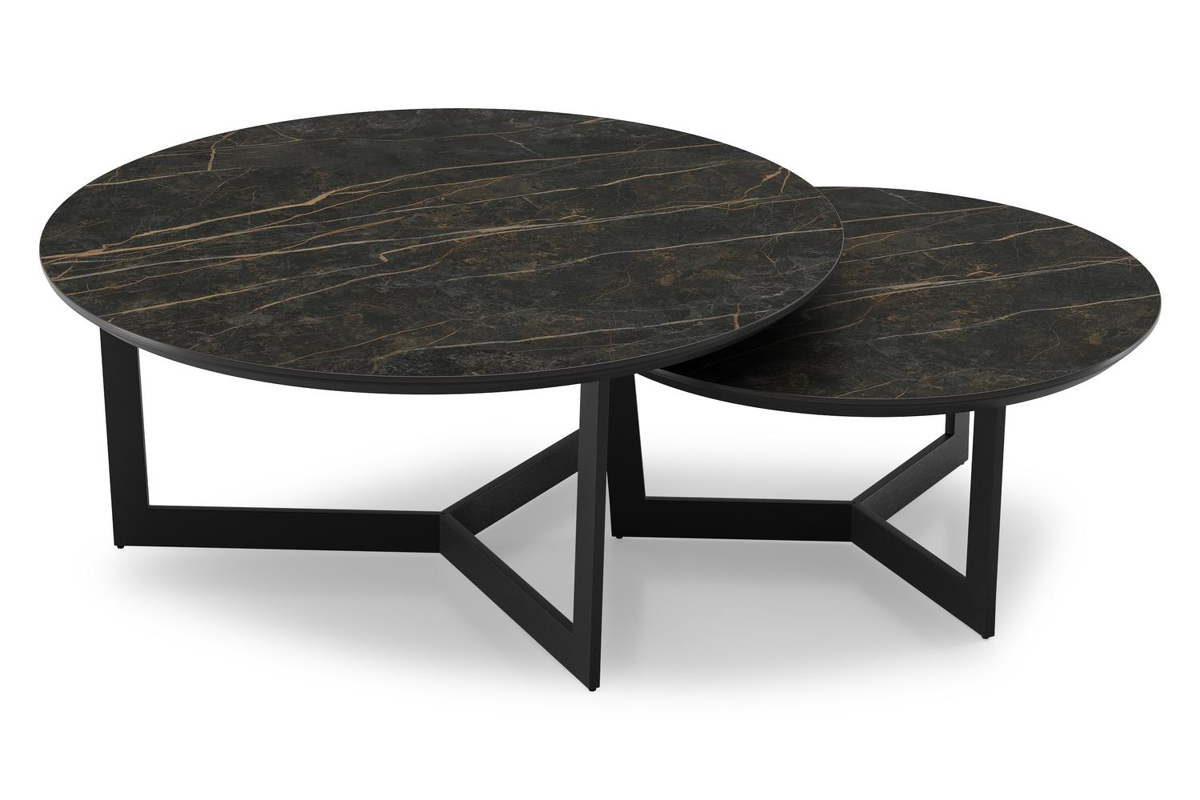 Lacrima loungetafels in zwart aluminium en black obsession volkeramiek - Dia. 85/65 x H 35/30 cm | Exterioo