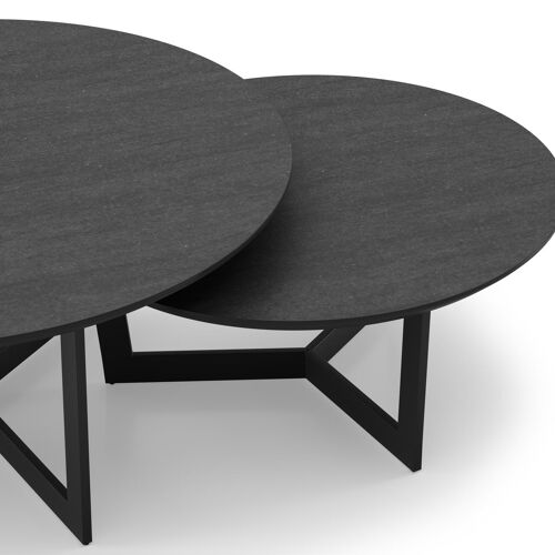 Lacrima loungetafels in zwart aluminium en basalt black volkeramiek - Dia. 85/65 x H 35/30 cm | Exterioo