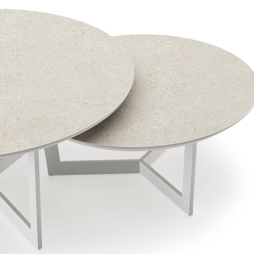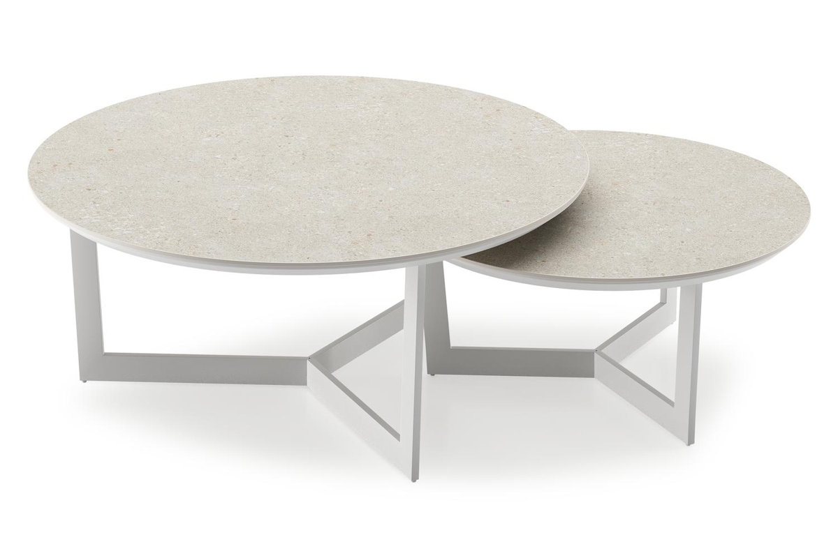 Lacrima loungetafels in wit aluminium en shilin volkeramiek - Dia. 85/65 x H 35/30 cm | Exterioo