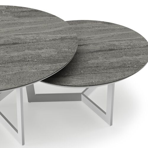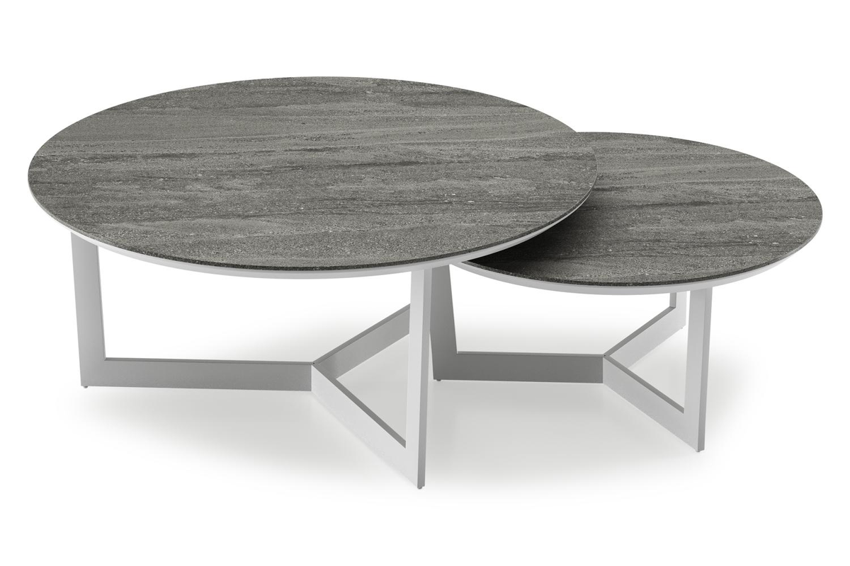 Lacrima loungetafels in wit aluminium en aspen grey volkeramiek - Dia. 85/65 x H 35/30 cm | Exterioo